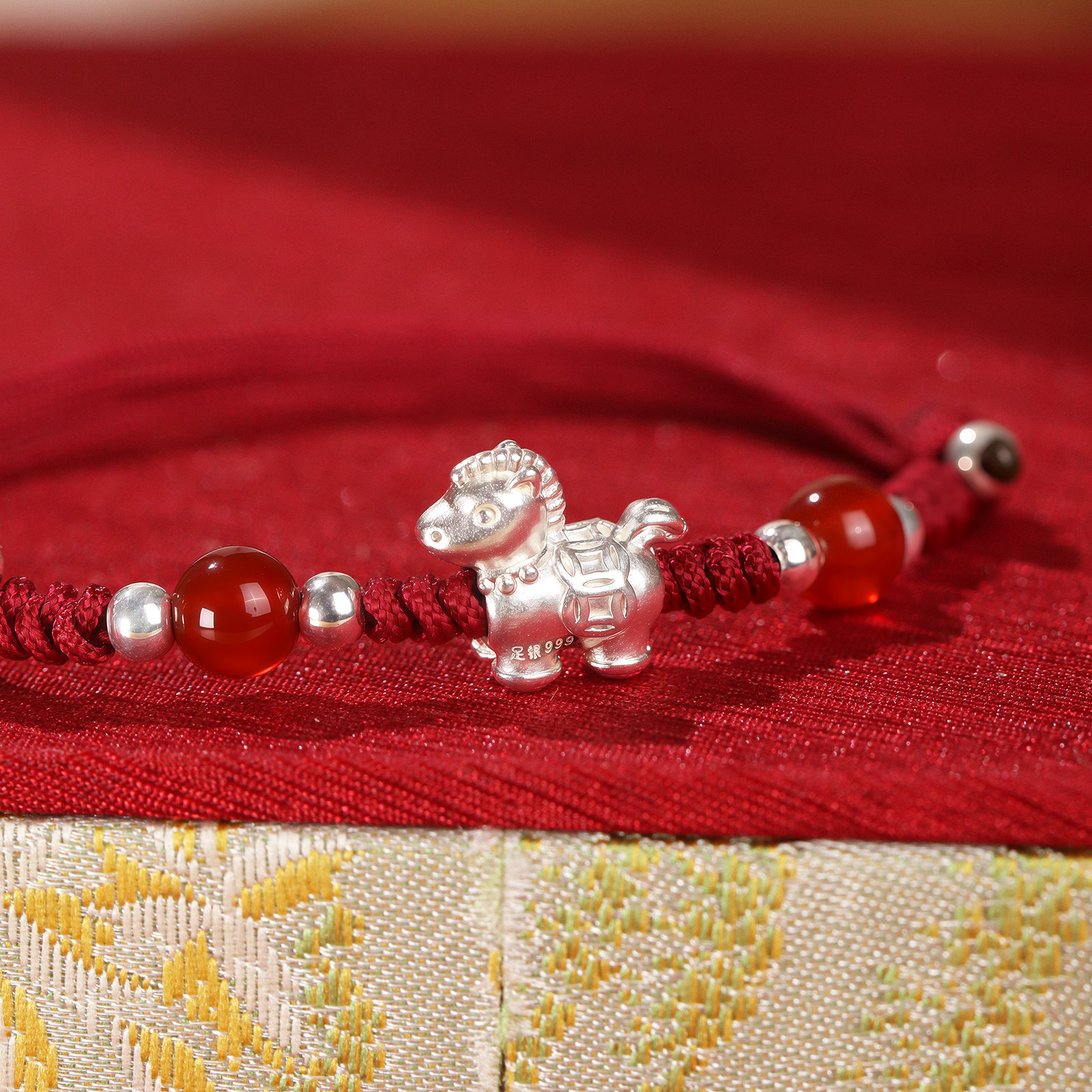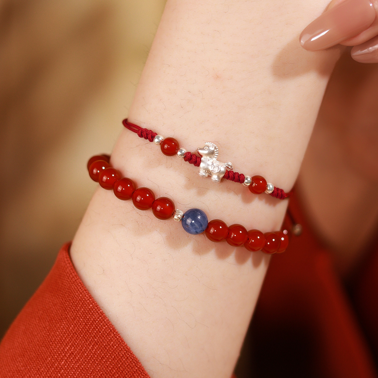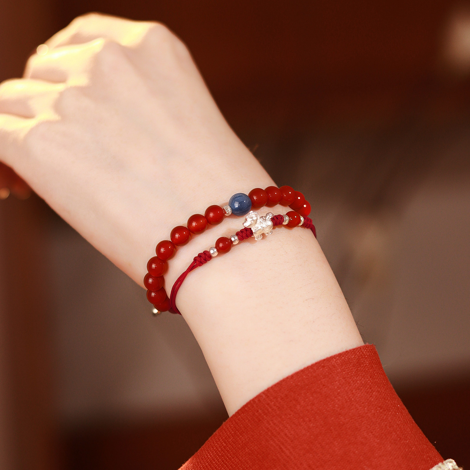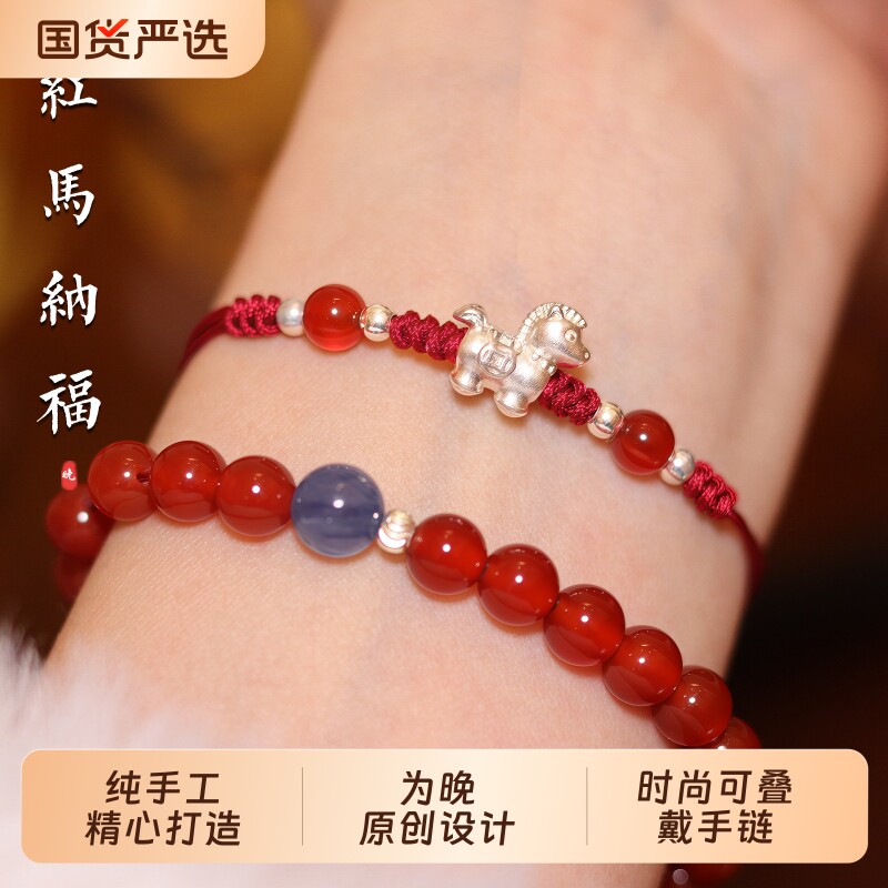 红马纳福2026马年本命年红绳纯天然红玛瑙手串巨好看的手链叠戴