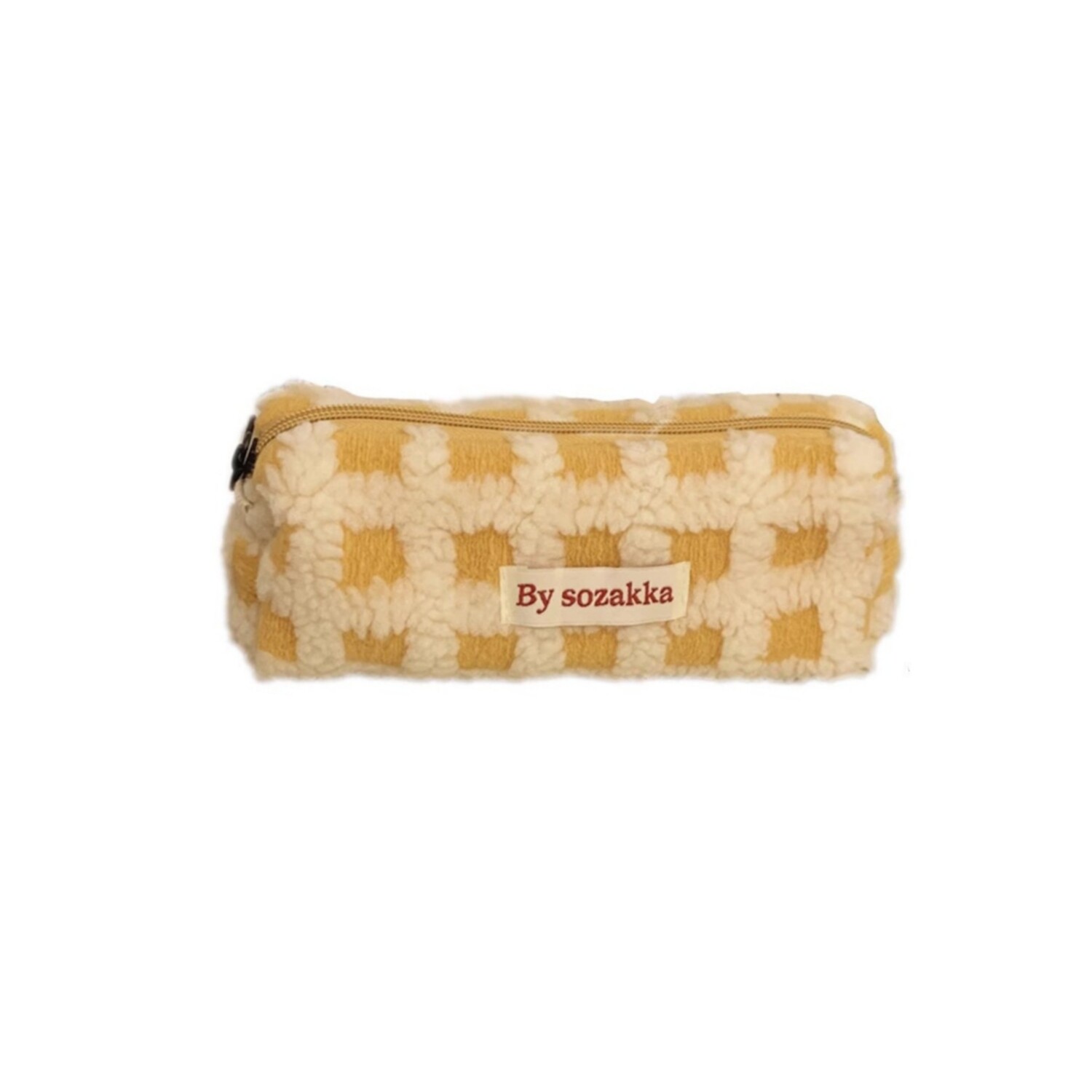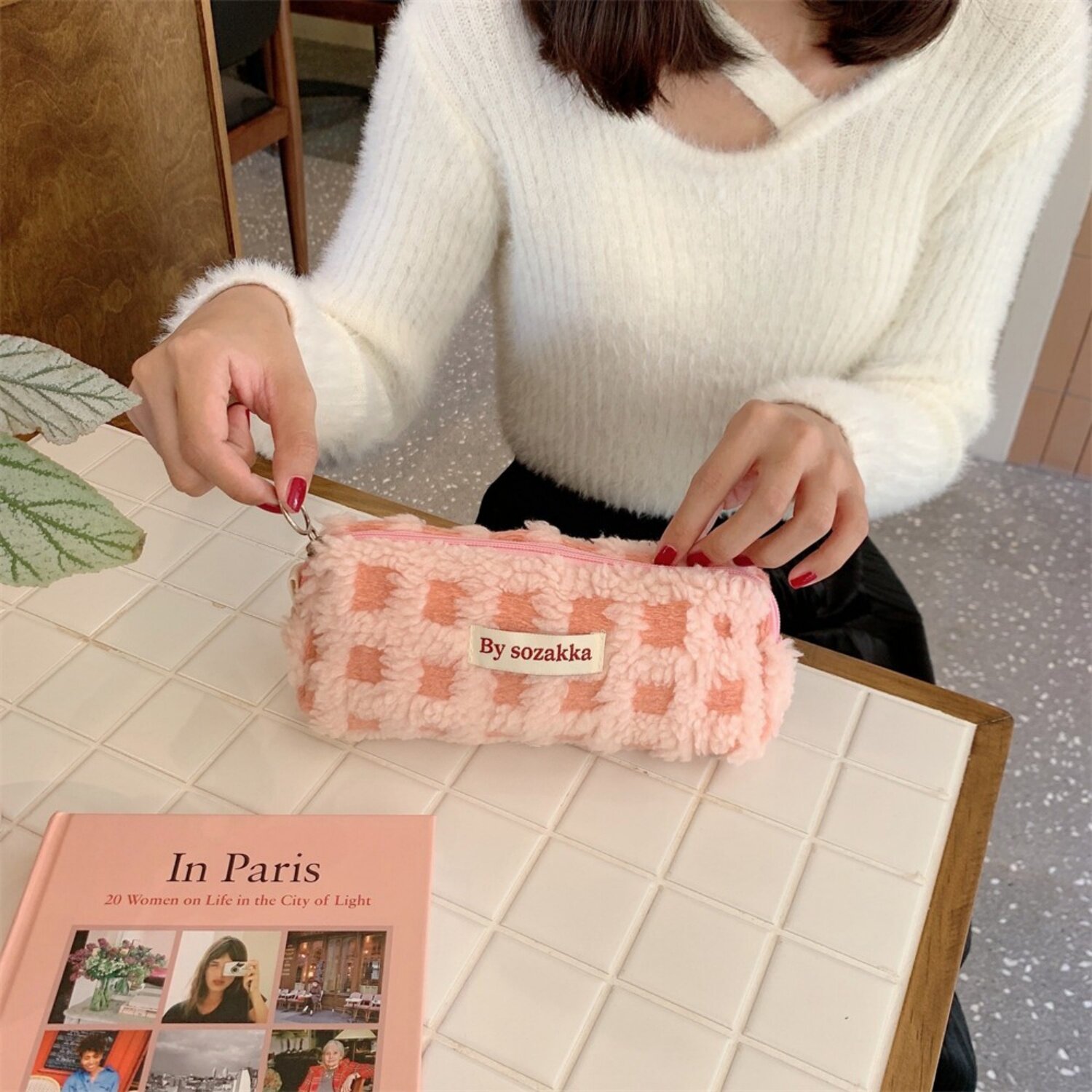 佑木包袋 奶乎乎华夫格仿羊羔绒毛毛笔袋ins风学生文具杂物收纳袋