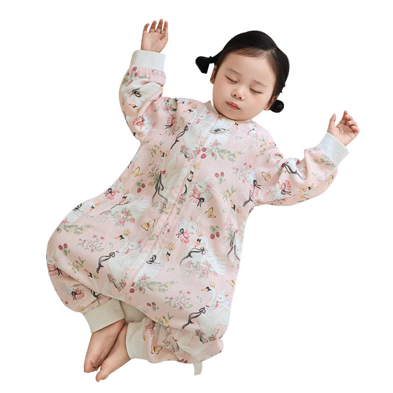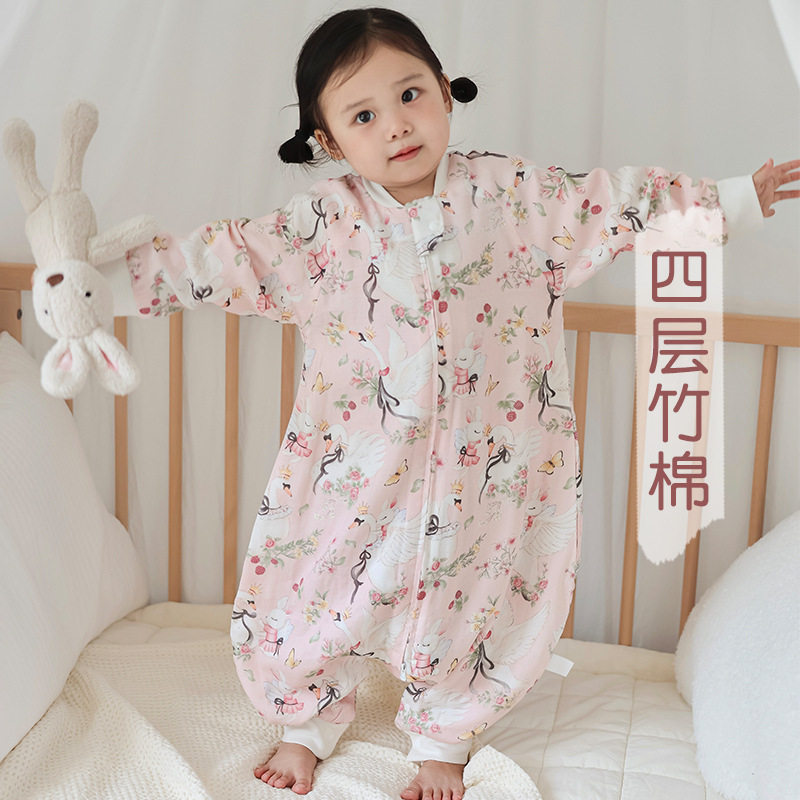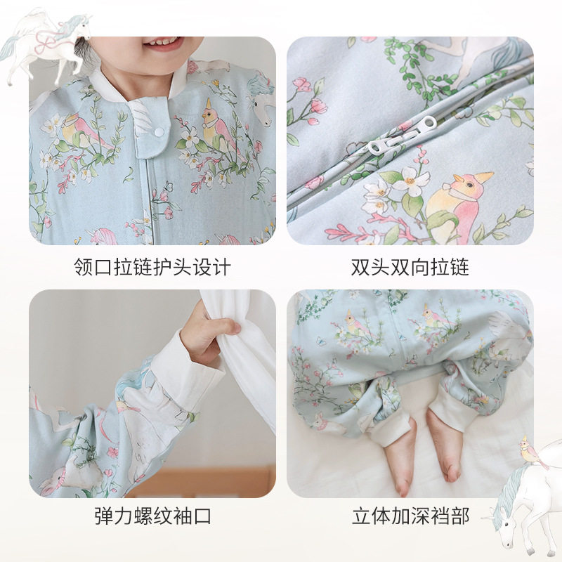 欧孕小清心睡袋婴儿四季通用竹棉纱布宝宝防踢被儿童分腿春秋冬款