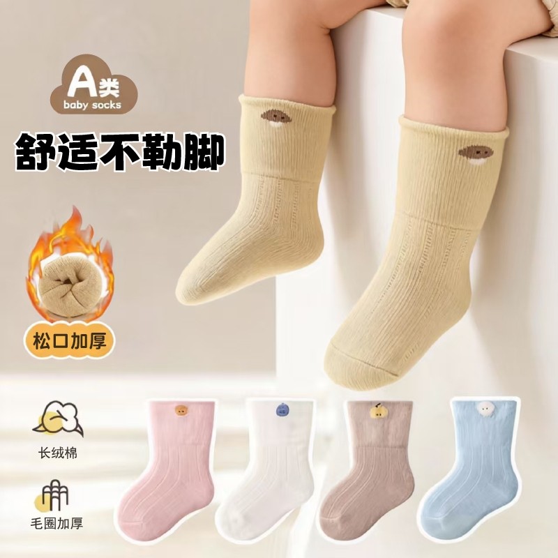 新生婴儿袜子秋冬毛圈款加绒加厚0-6月宝宝儿童袜保暖中筒袜不勒