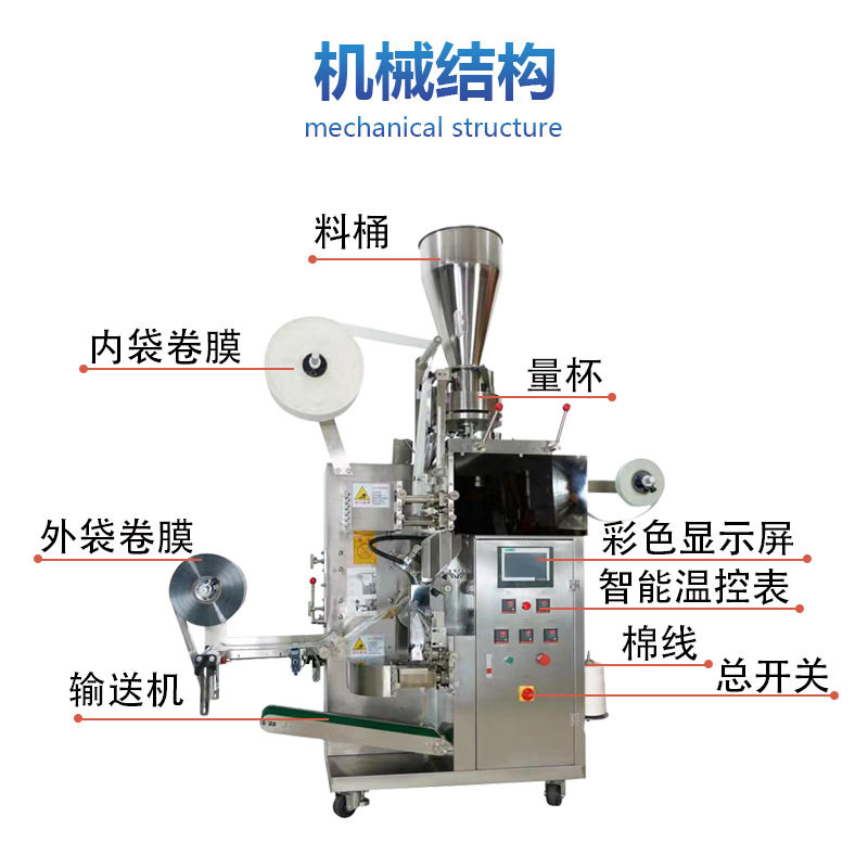 全自动带线带标内外袋茶叶包装机养生袋泡茶包装机茶叶包装机