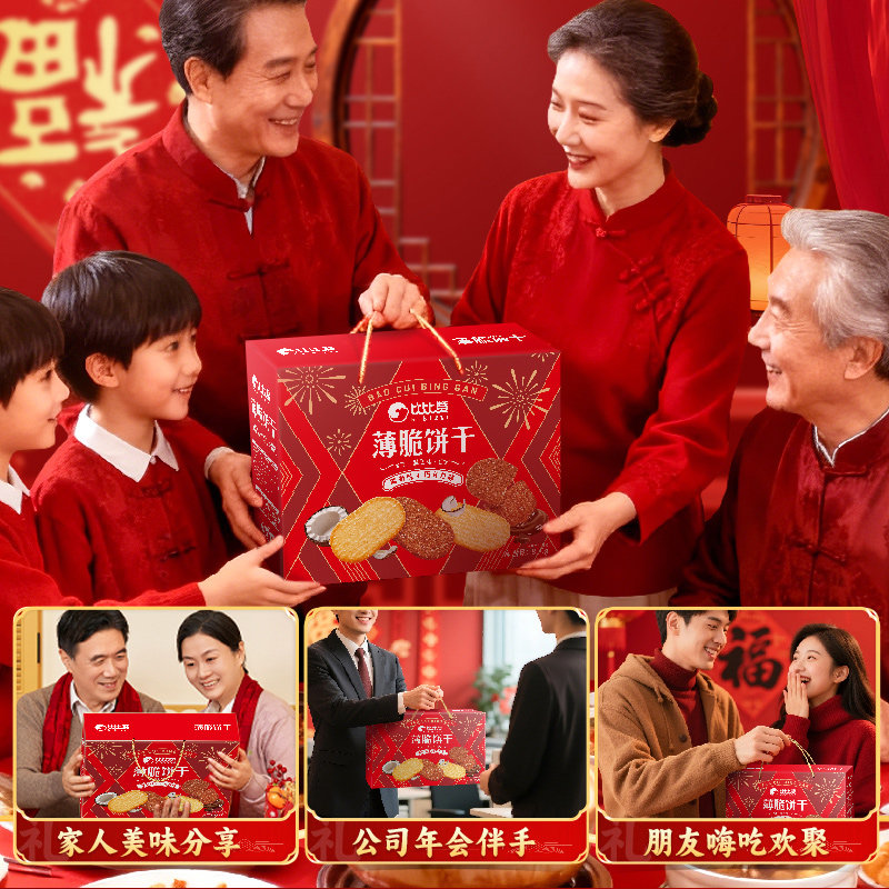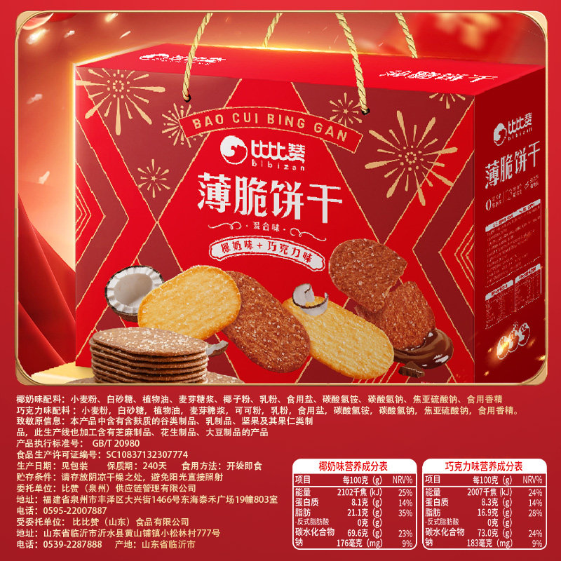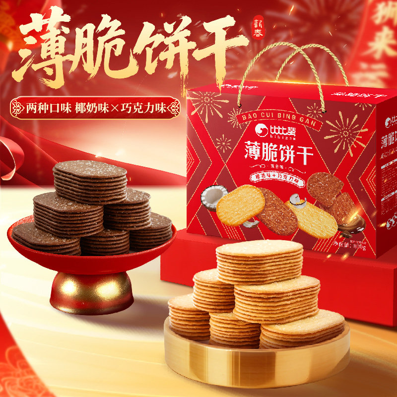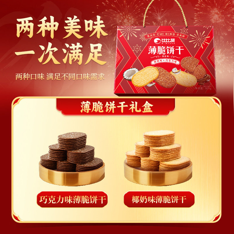 比比赞薄脆饼干椰奶味薄饼礼盒年货过节送礼零食休闲食品小吃团购