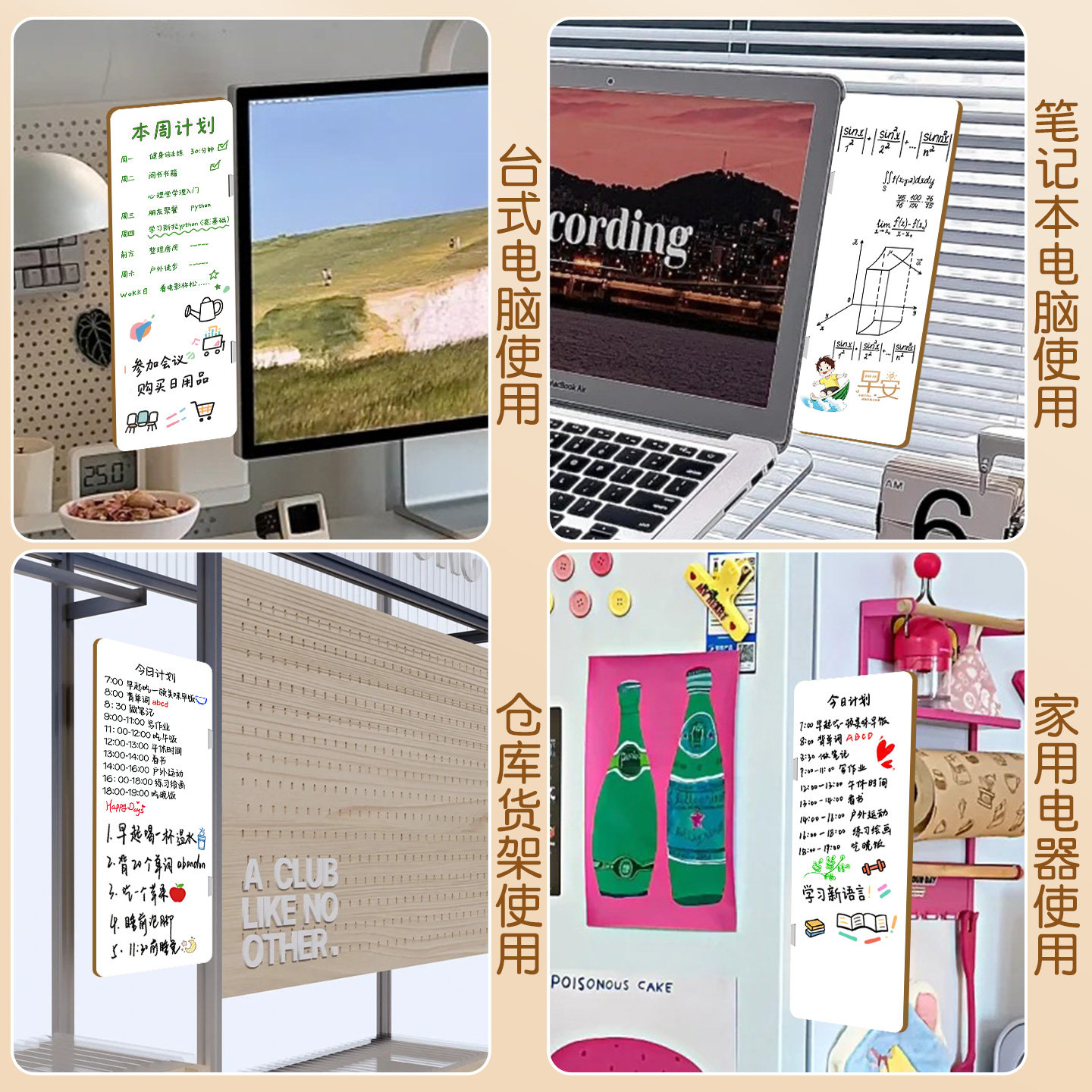 办公桌电脑侧边夹留言板磁吸双面白板可擦备忘留言板提示板记事板