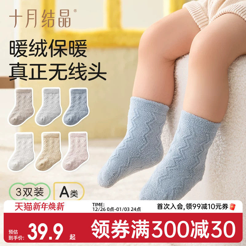 十月结晶婴儿袜子牛奶绒秋冬款加厚保暖新生儿男女宝宝地板袜棉袜