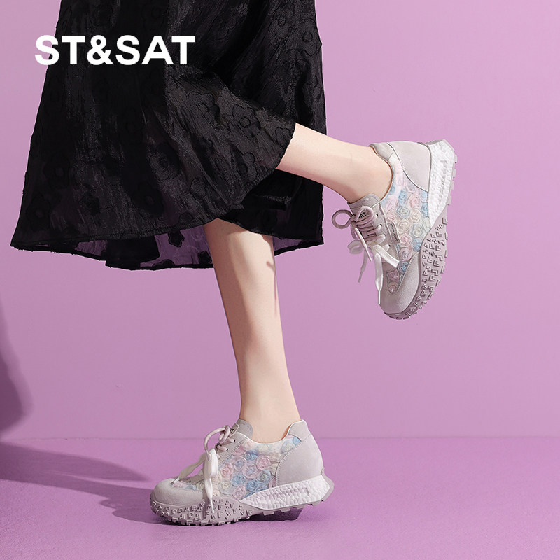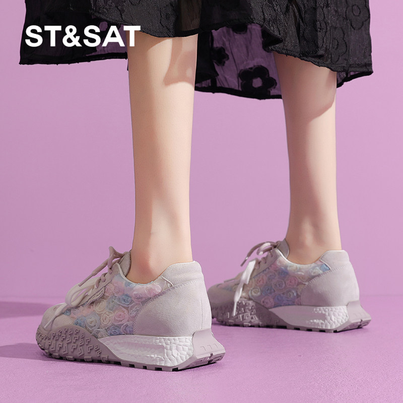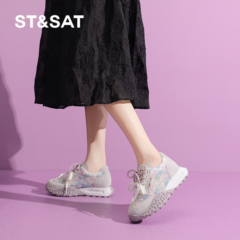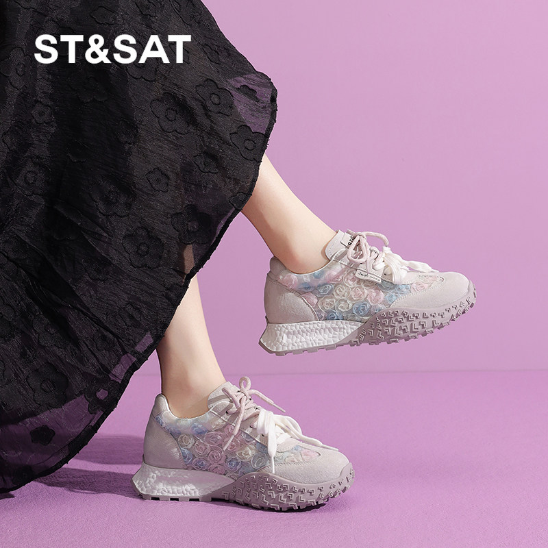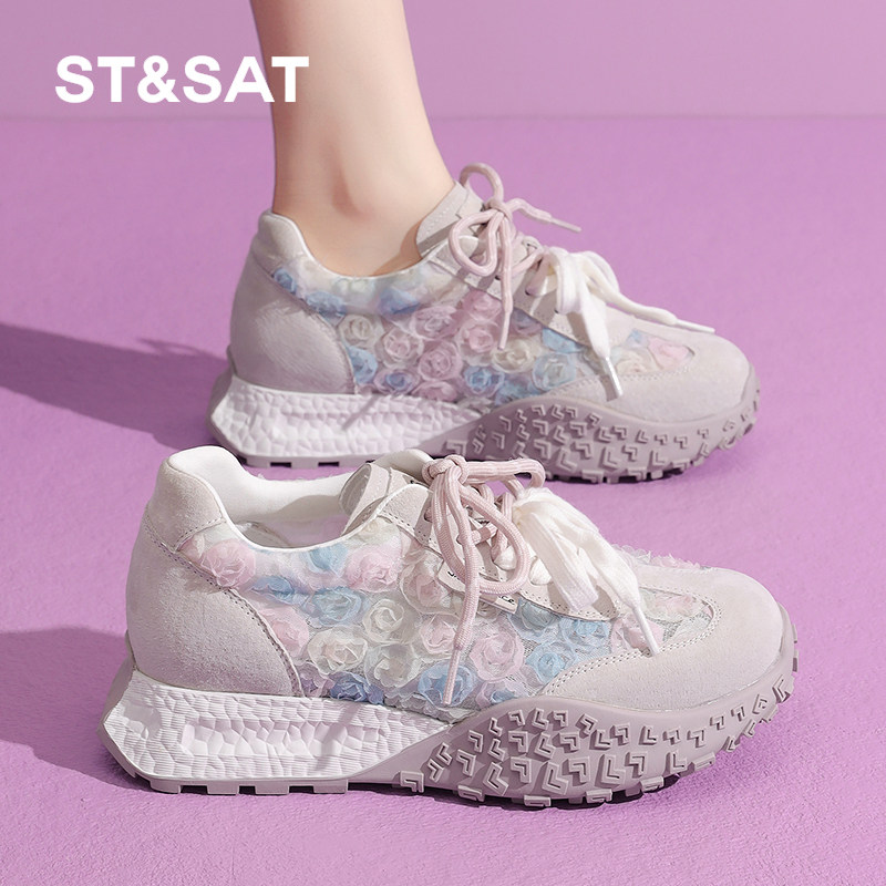 星期六双鞋带德训鞋女款2025新款网面透气网鞋软底厚底运动休闲鞋