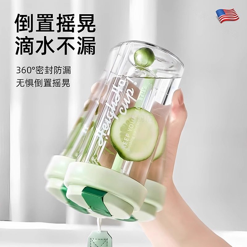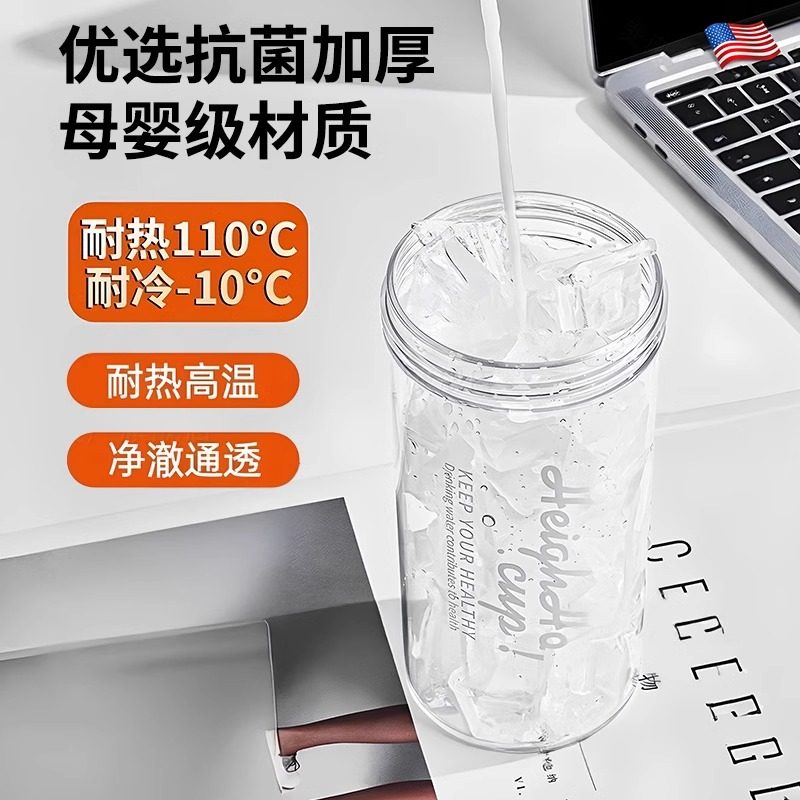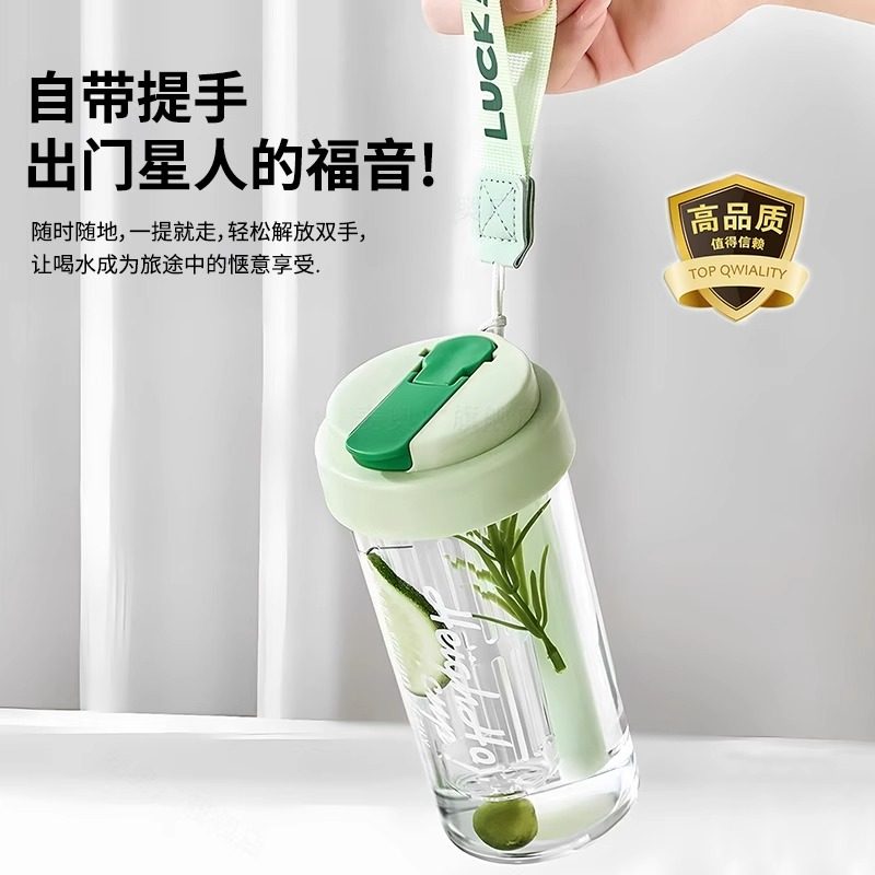 吸管水杯男女高颜值便携杯子家居馆学生杯大容量耐高温塑料带茶隔