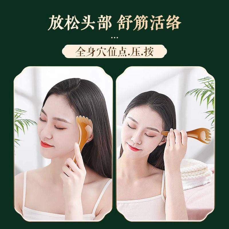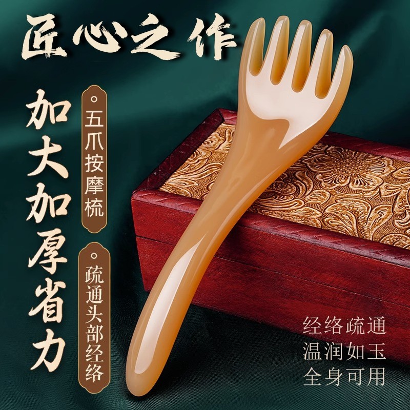 牛角五爪头部按摩梳经络梳拨筋棒梳头皮刮痧头疗专用玉石水晶刮痧