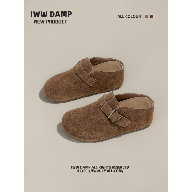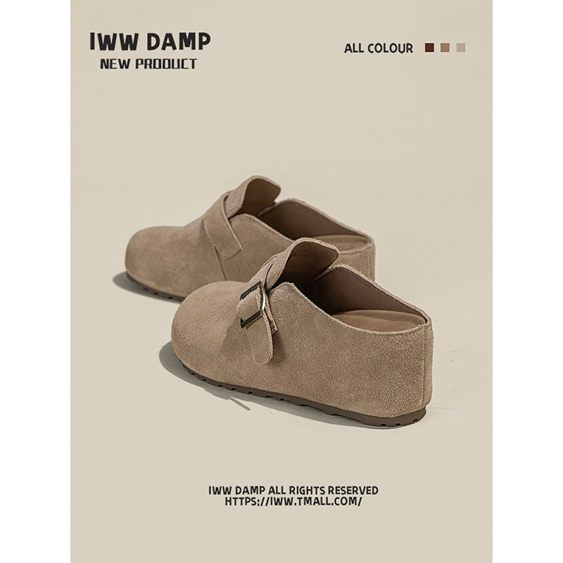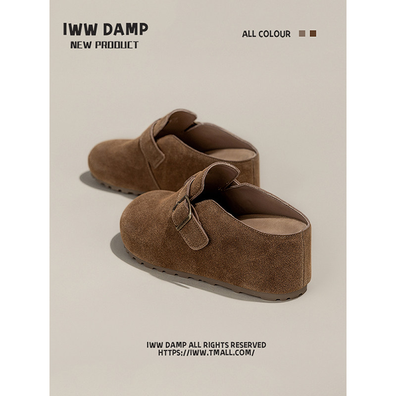 IWW厚底增高7cm包头勃肯半拖鞋女2025新款复古皮带扣欧货百搭简约