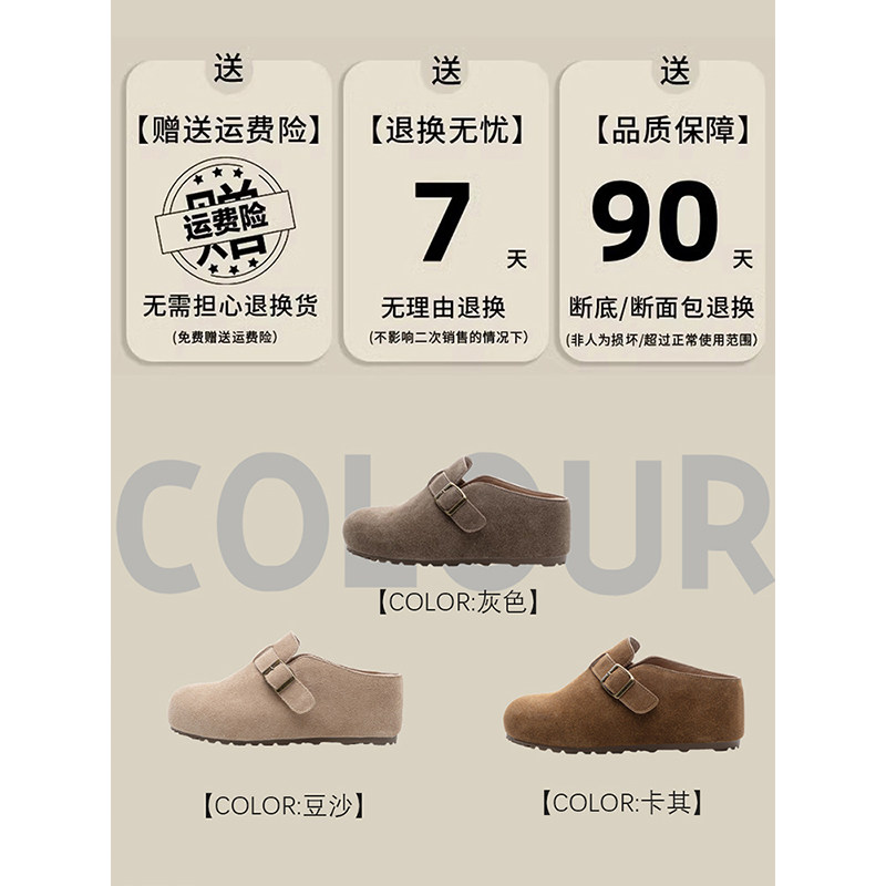 真皮包头拖秋季2025年新款勃肯鞋圆头拖鞋平底外穿休闲半拖懒人鞋