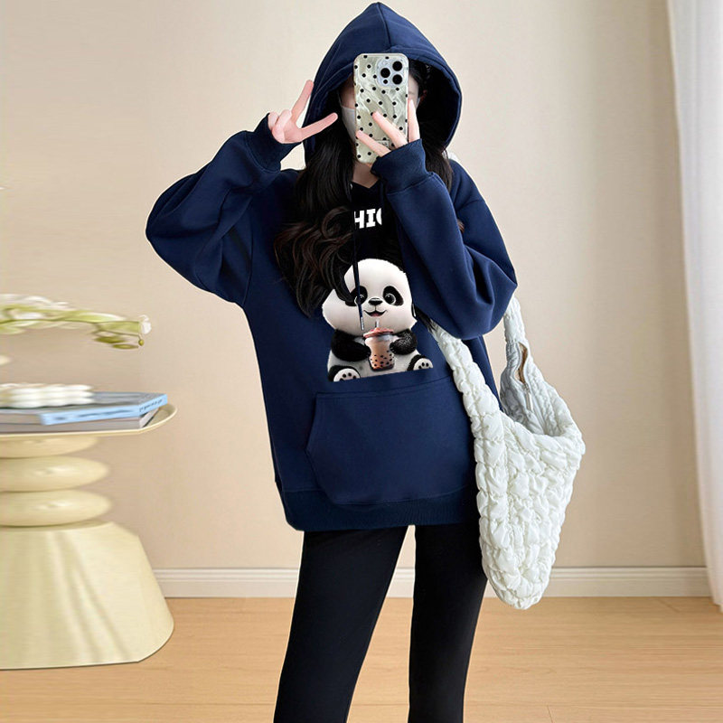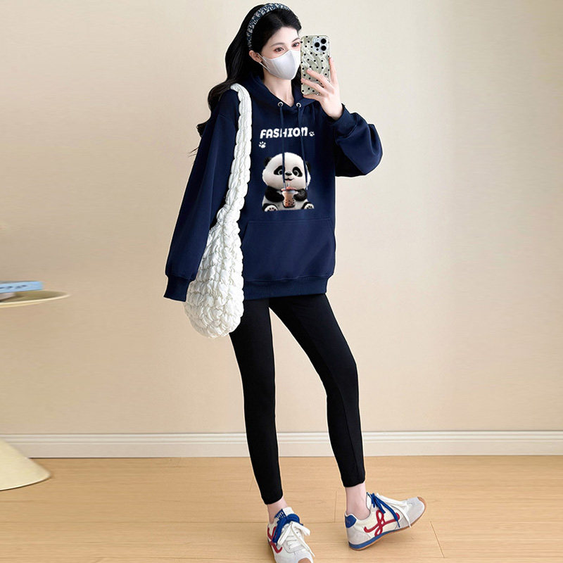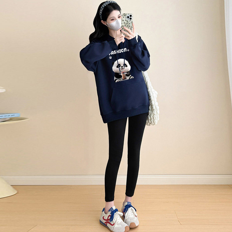 孕妇装2025新款连帽卫衣女秋冬装加厚宽松遮肚显瘦长袖上衣ins风