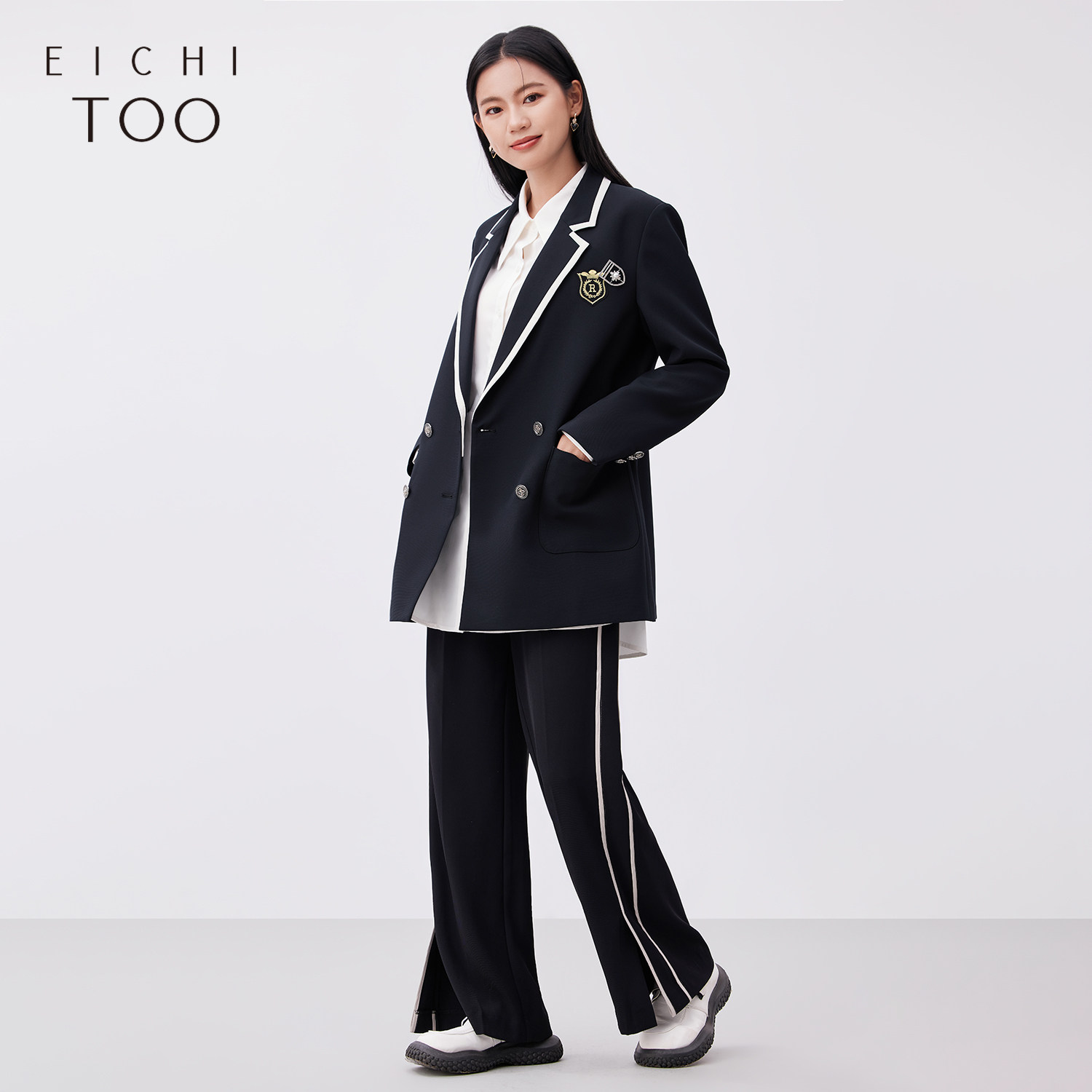 Eland衣恋西装女时尚双排扣休闲通勤外套2025冬季新款