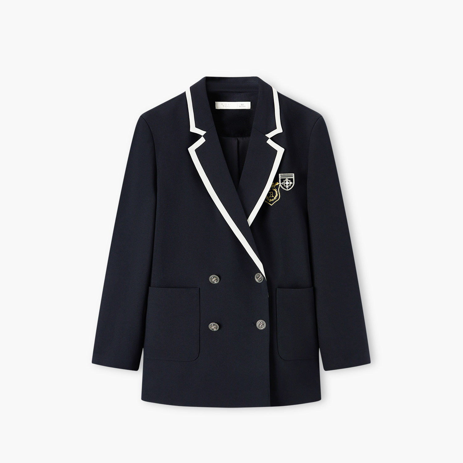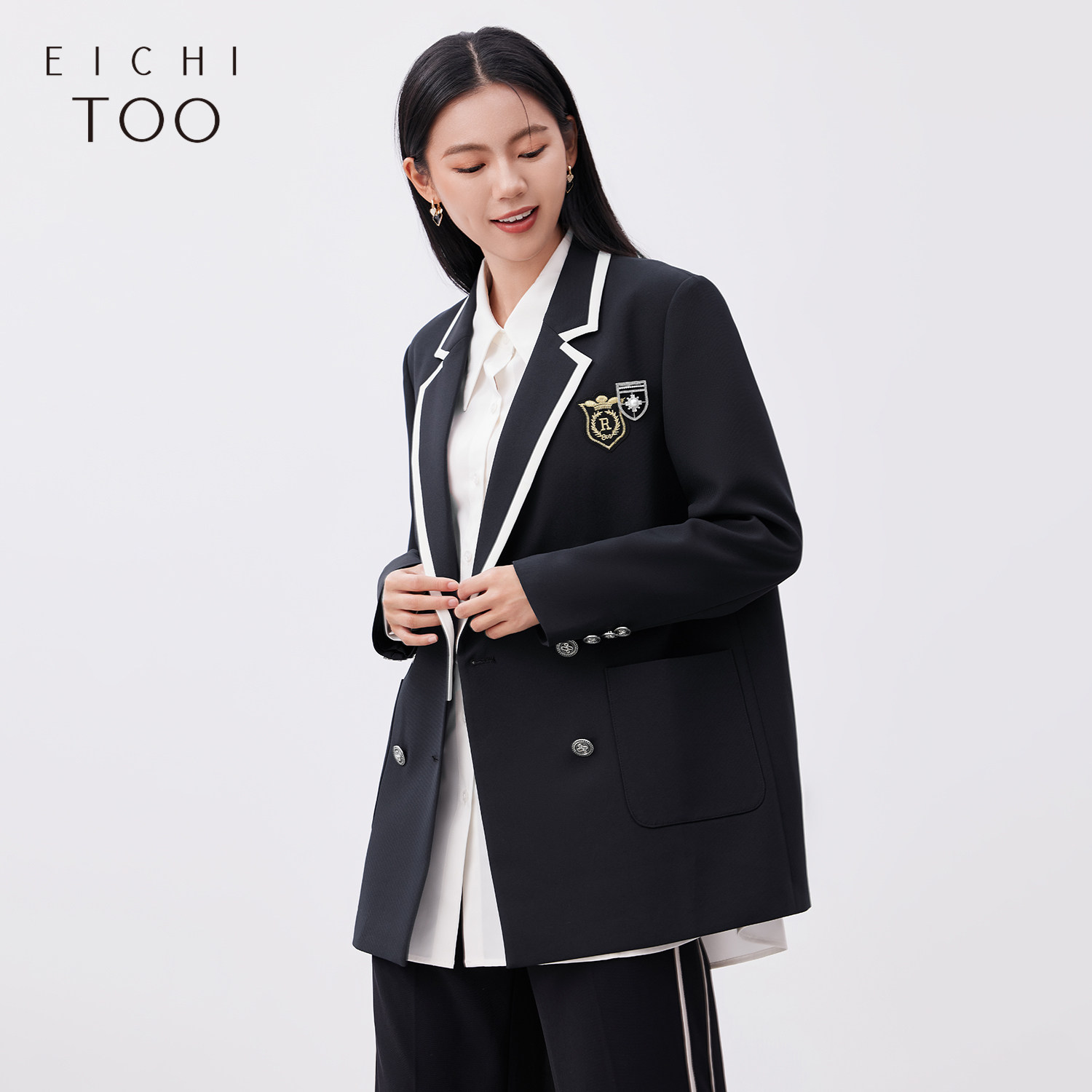 爱居兔春季新款黑白拼接学院风经典时尚西服外套小西装