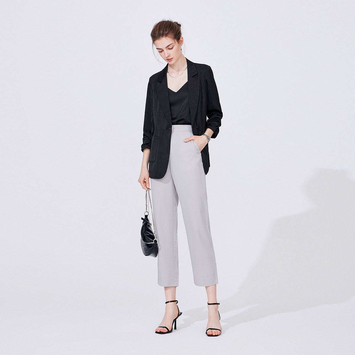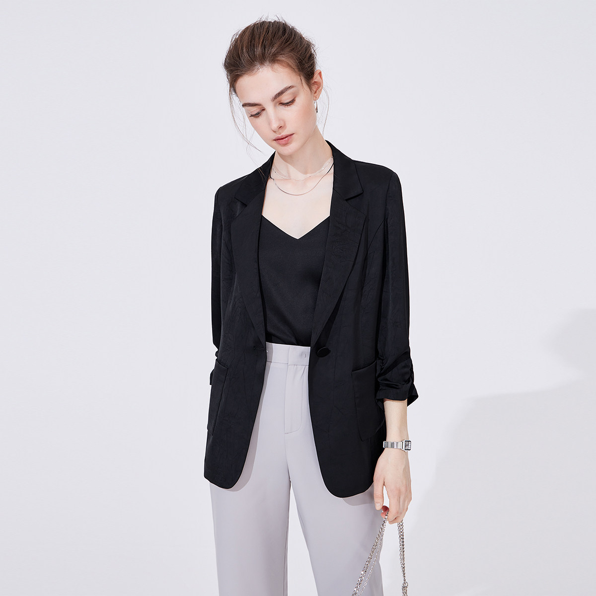 芝美日禾 极简弹力针织小个子西装外套女单层修身一粒扣职业正装
