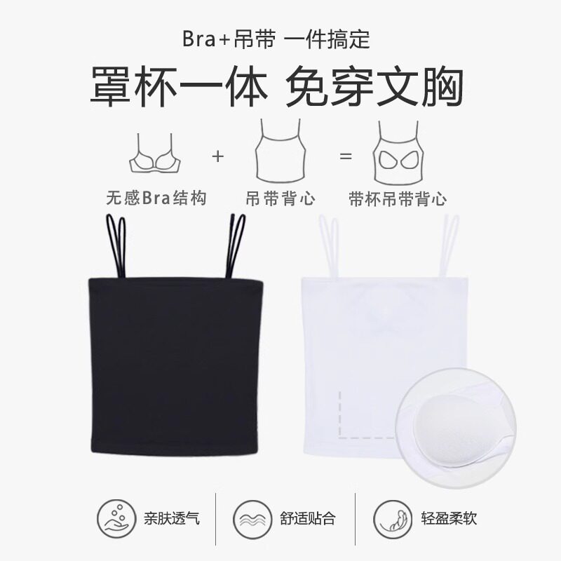 半练吊带背心女免穿文胸内搭遮副乳美背带胸垫一体式白色打底外穿