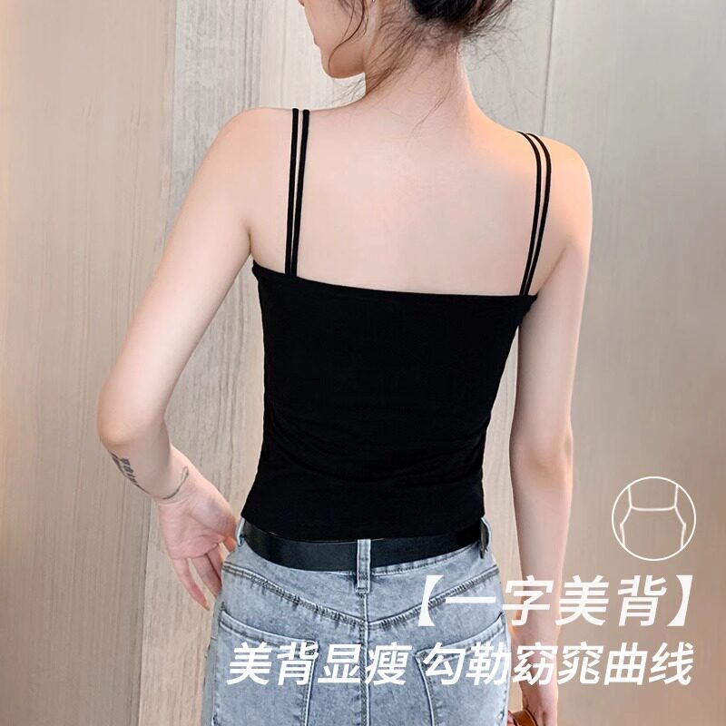 一字领小吊带背心女内搭2025春夏新款带胸垫美背黑色纯棉打底上衣