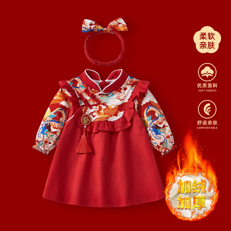 女宝宝冬装周岁礼服旗袍裙婴儿衣服女宝新年拜年服秋冬公主连衣裙