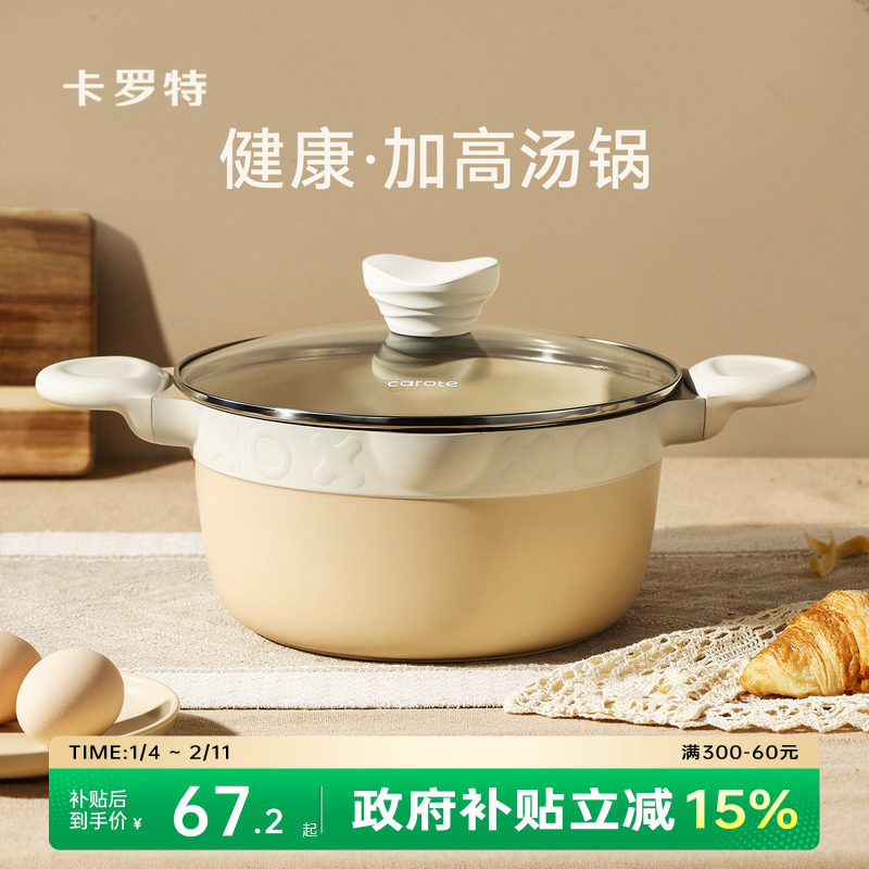 卡罗特汤锅煮锅炖锅蒸锅家用双耳煲汤锅电磁炉燃气灶不粘锅轻量锅