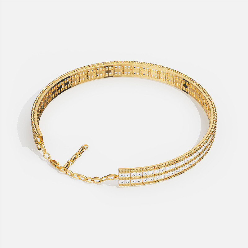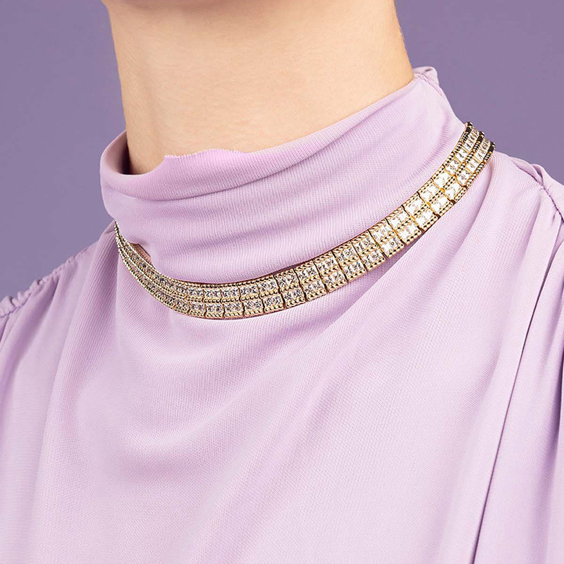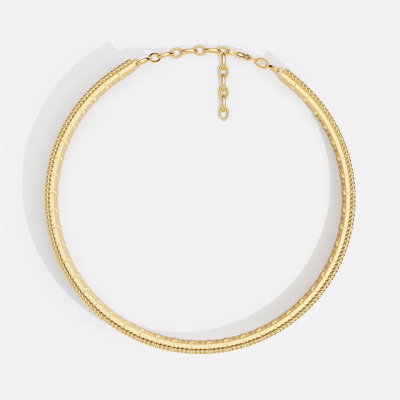 [春季新品]APM Monaco金黄色Torsade密镶可调节项圈双层项链扭纹