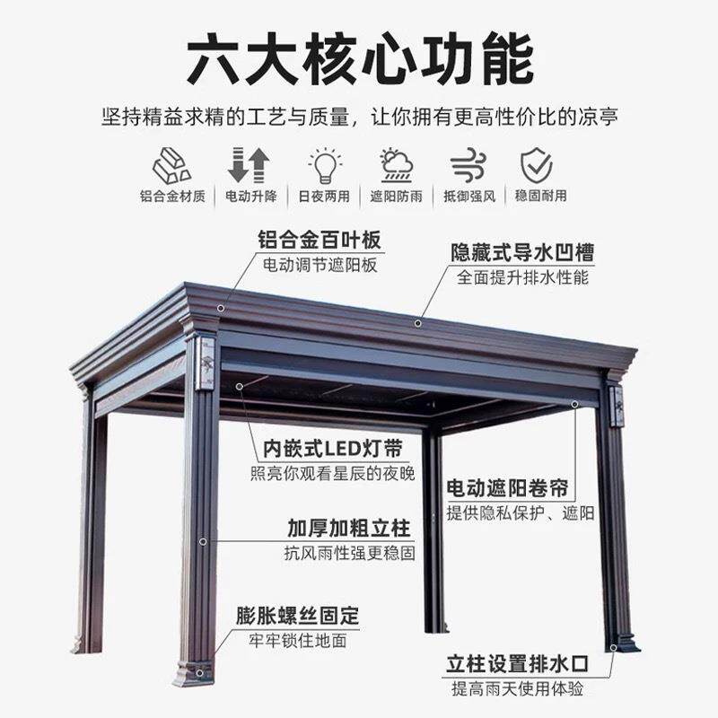 户外凉亭室外铝合金庭院花园别墅露台现代新中式电动亭子阳光房