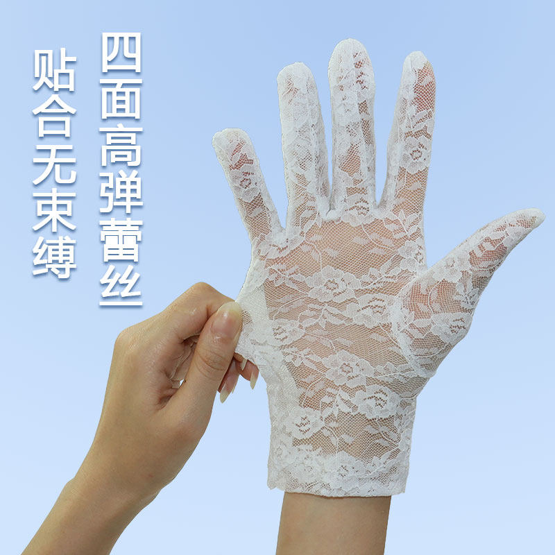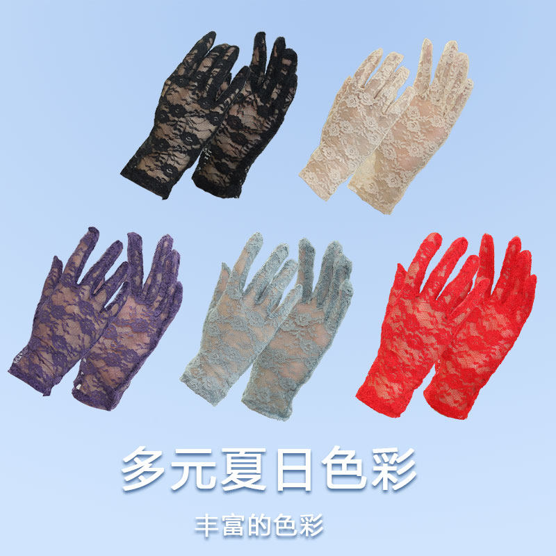 开车薄款手套防晒防紫外线复古弹力网纱夏季蕾丝透气白色红色黑色
