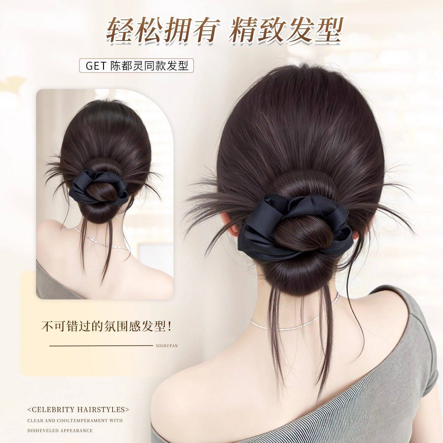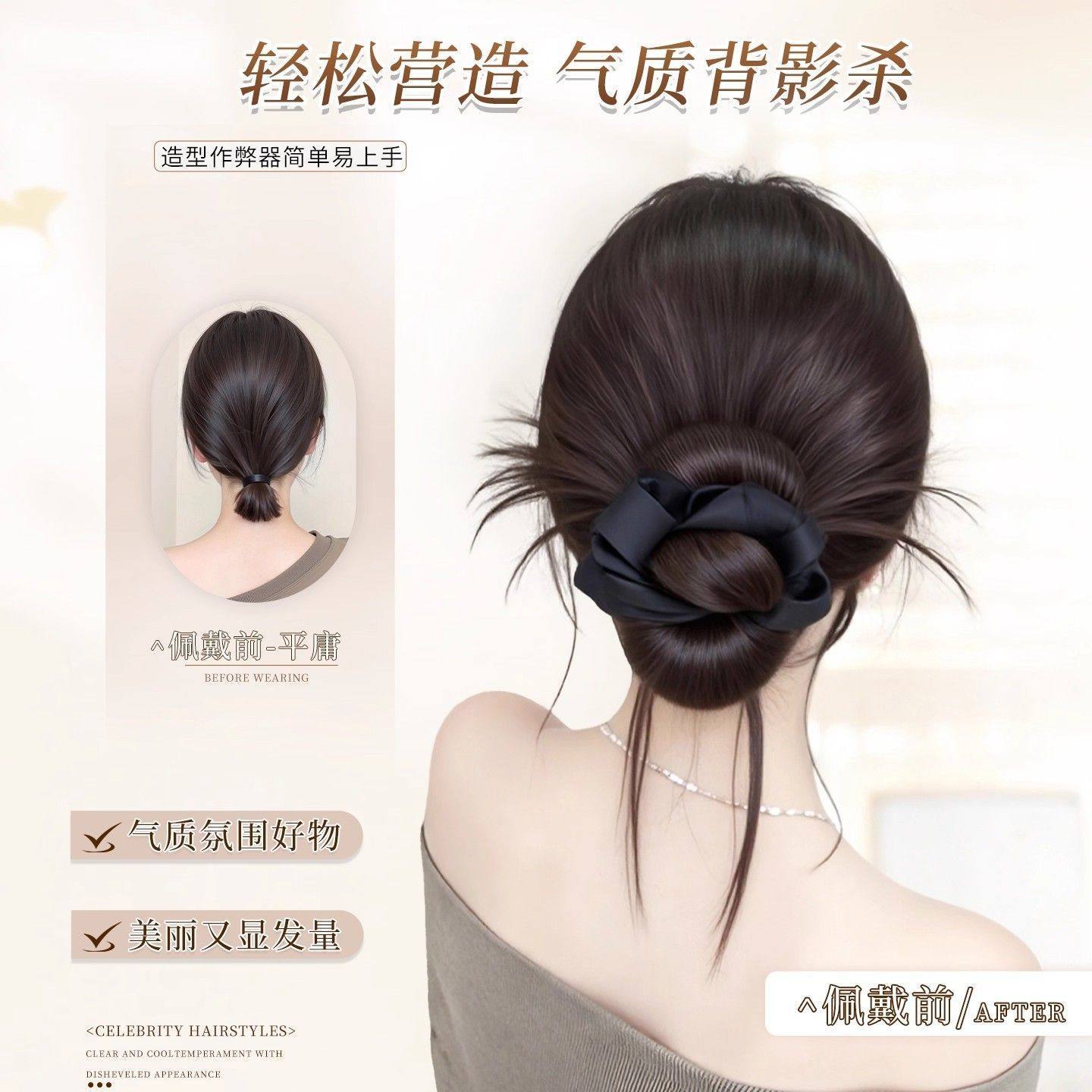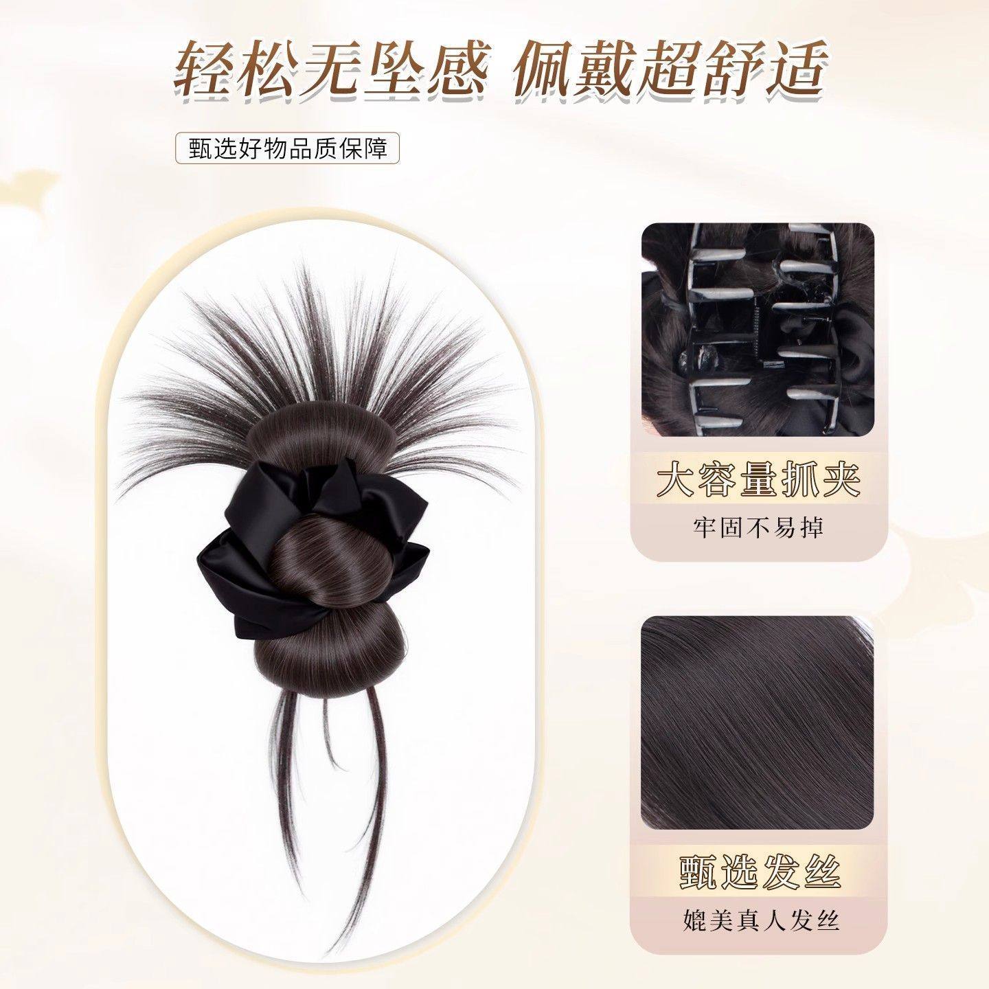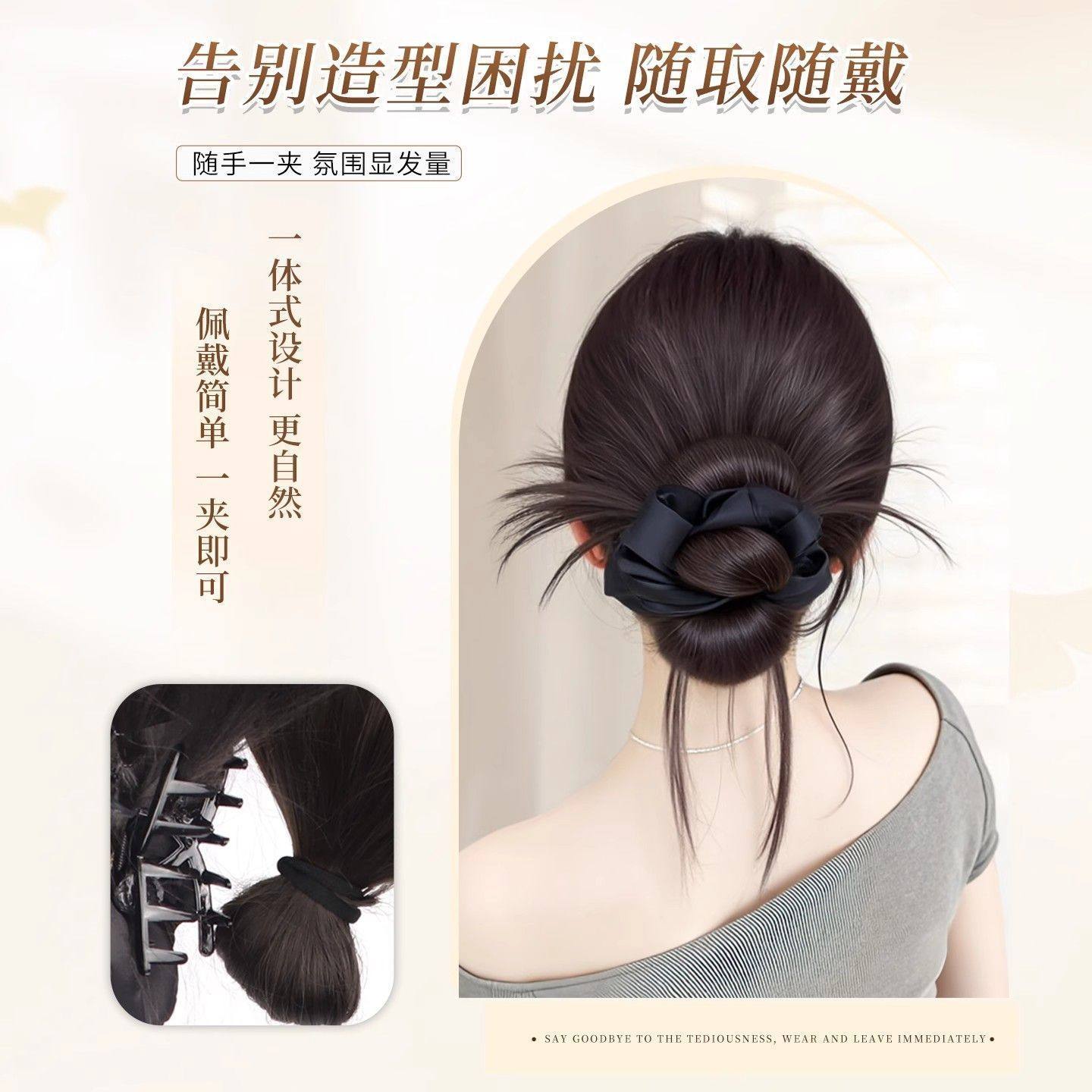 低扎丸子头假发鸡毛头抓夹盘发发包慵懒感造型头饰自然蓬松后脑勺