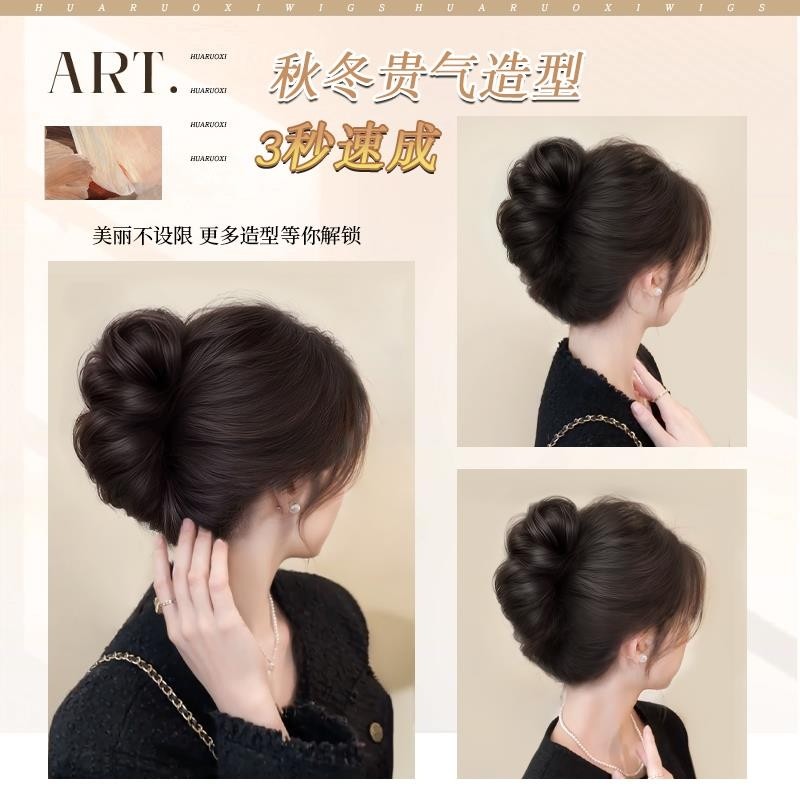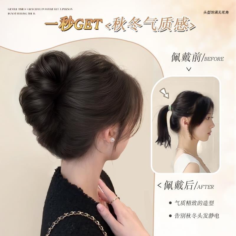低扎丸子头假发鸡毛头抓夹盘发发包慵懒感造型头饰自然蓬松后脑勺