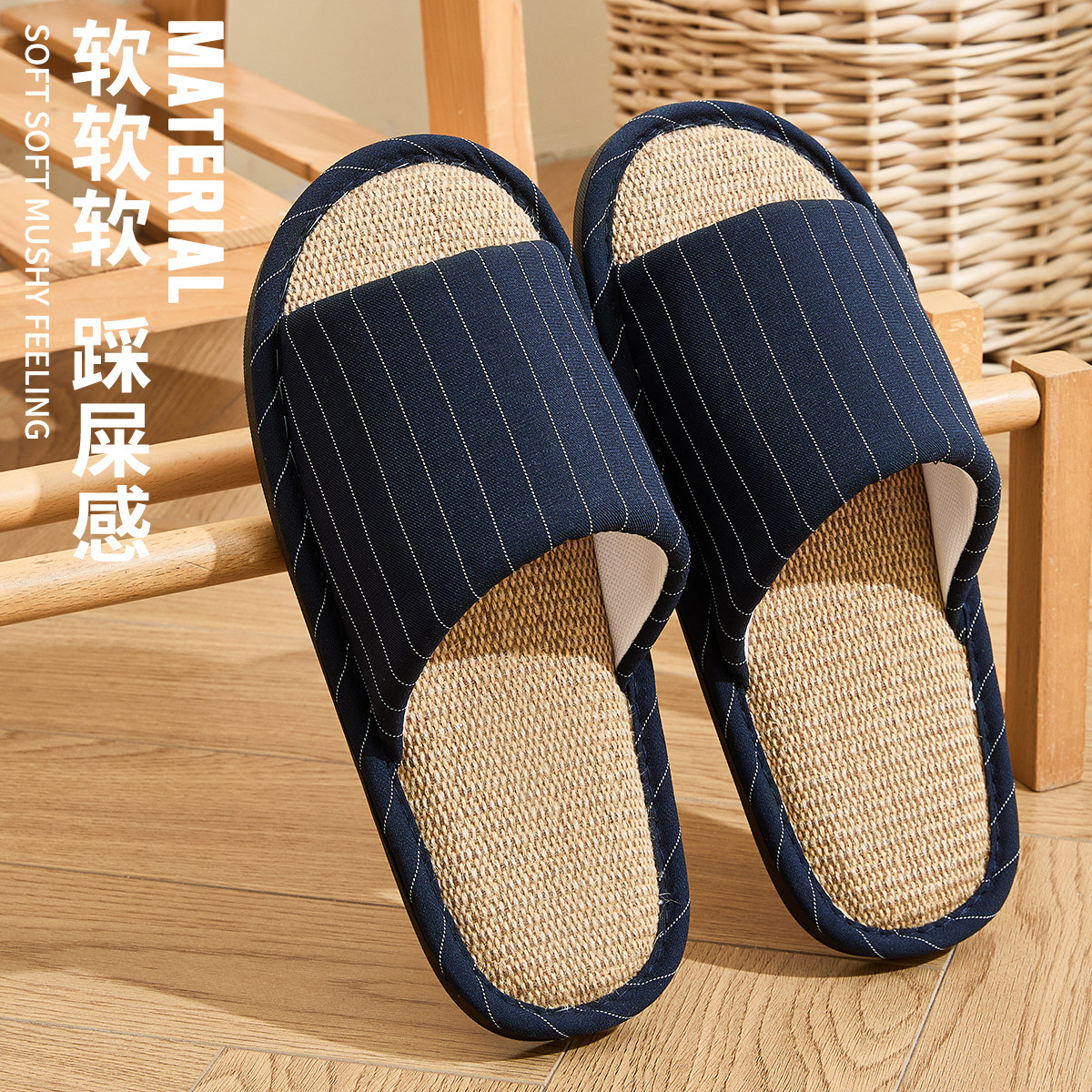 买1送1亚麻拖鞋女士情侣家居一对静音防滑家用招待客人棉麻拖鞋男