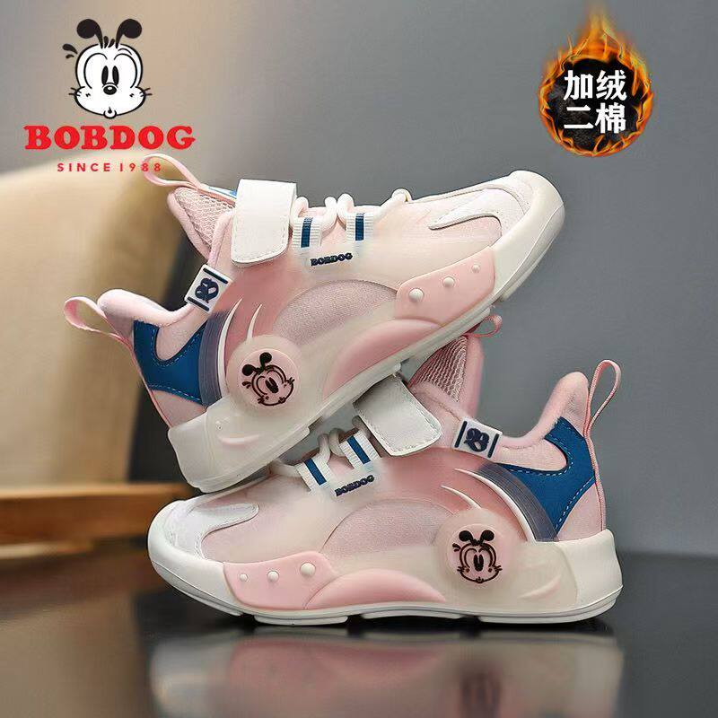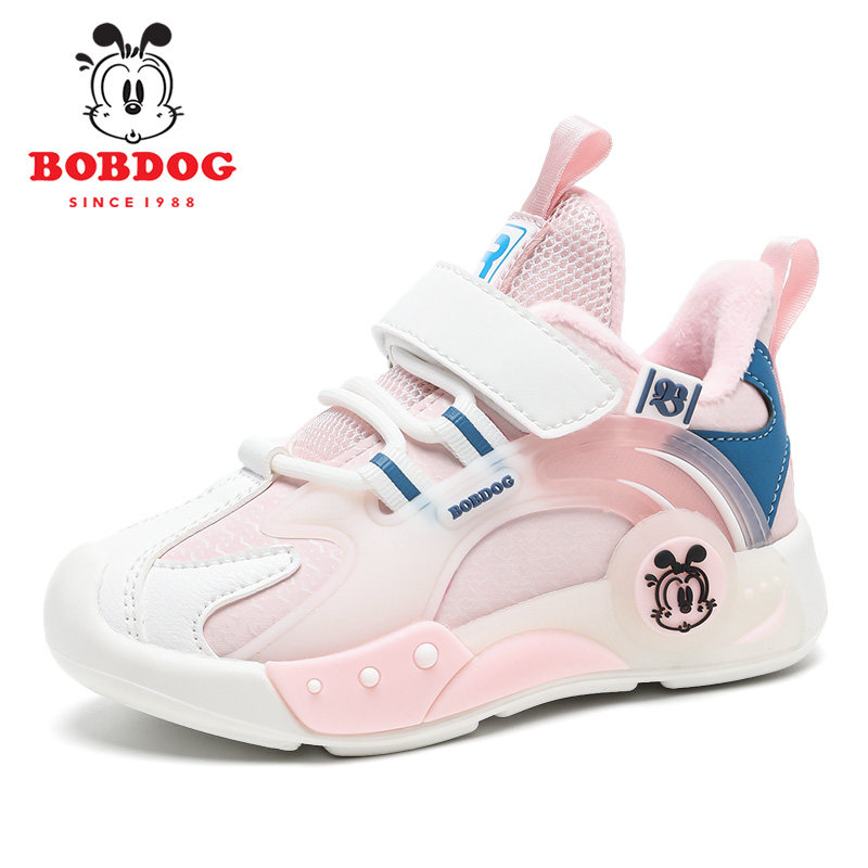 巴布豆女童鞋子加绒二棉鞋2025新款秋冬季保暖防滑软底儿童运动鞋