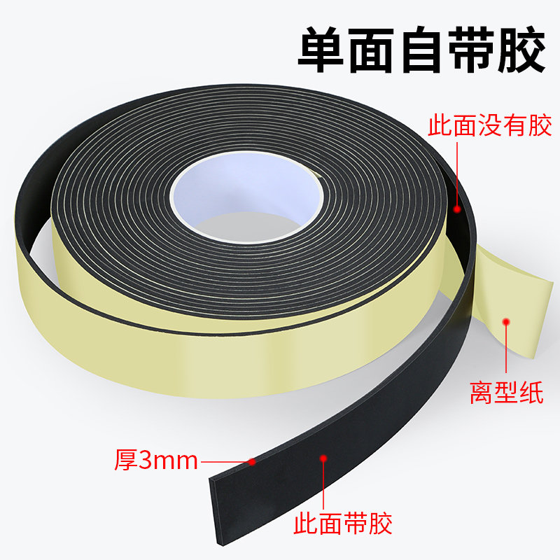 eva黑色强力单面海绵胶粘带泡棉泡沫胶带防撞减震密封胶条隔音缓冲防水填缝加厚自粘胶条高密度管道玻璃