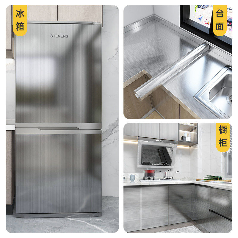 特厚金属贴纸自粘防水防潮冰箱橱柜翻新电梯门改色不锈钢拉丝贴膜