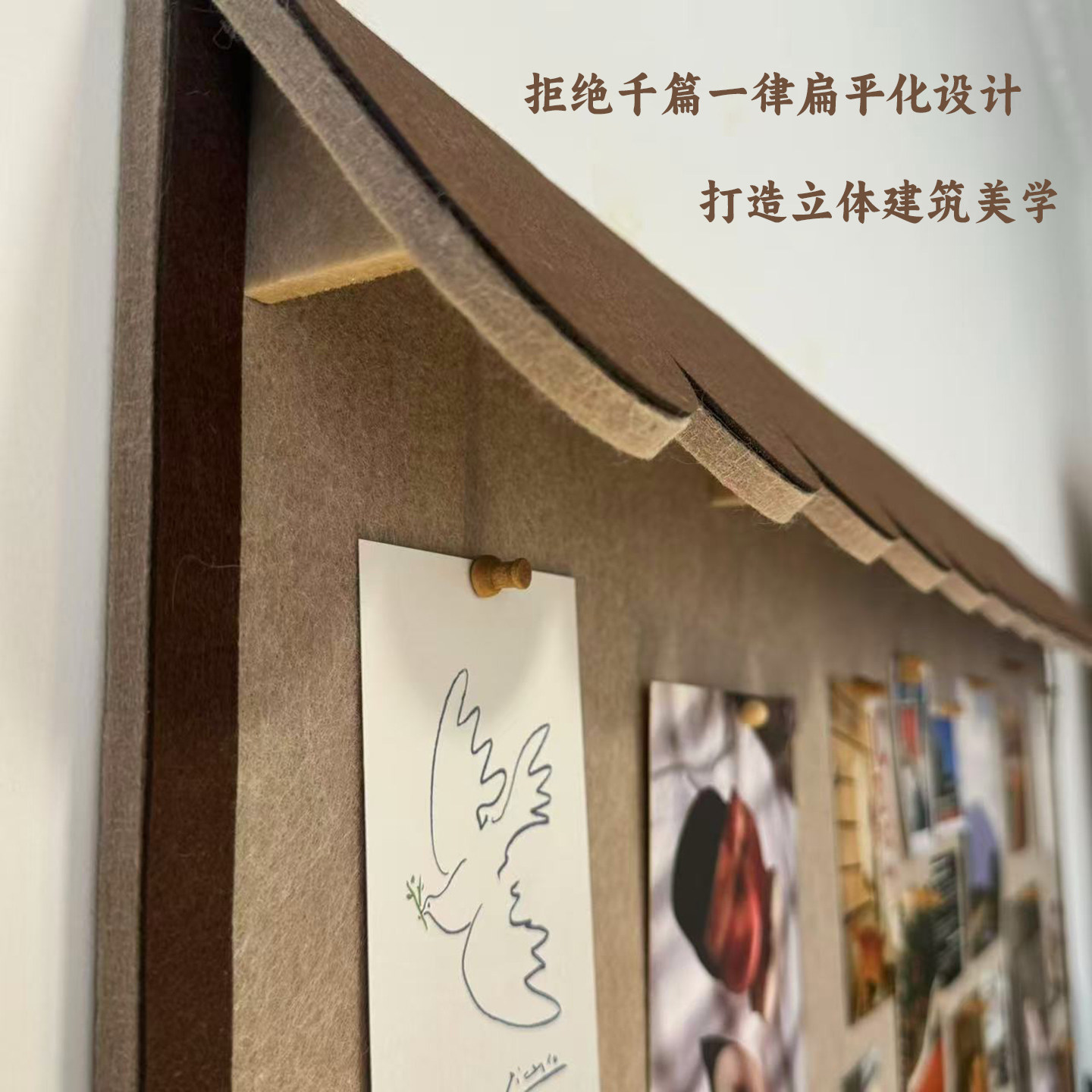 立体屋檐毛毡板照片墙贴复古高级感书桌前装饰软木板幼儿园展示板