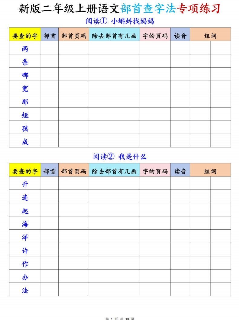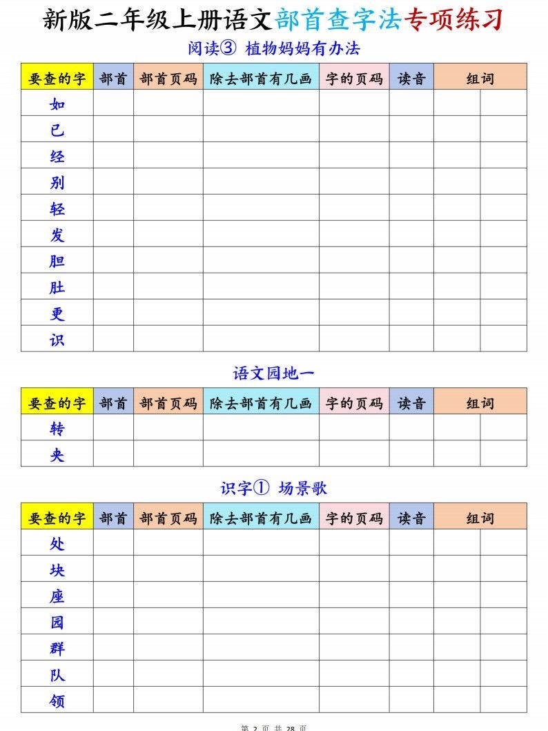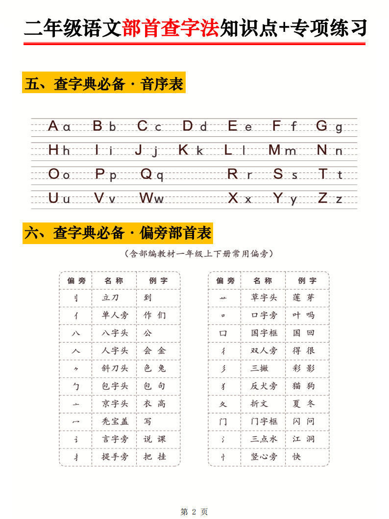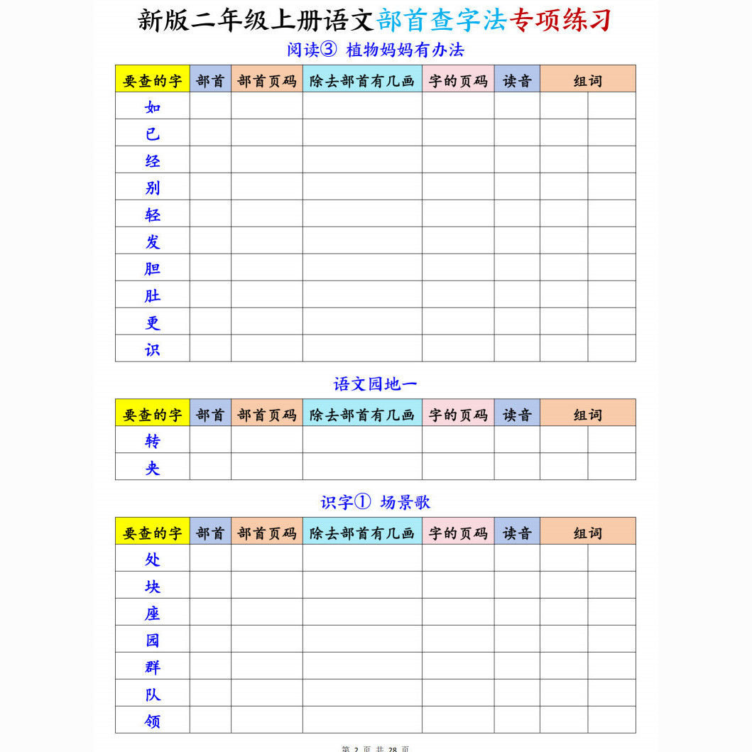 25新版二年级上册语文教你如何用部首查字法知识点与生字表练习