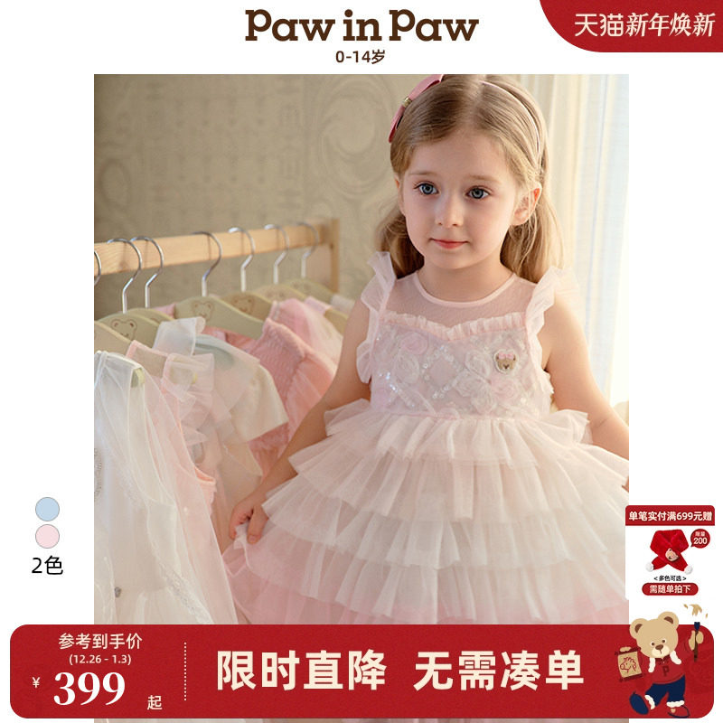 【商场同款】PawinPaw卡通小熊童装25春夏新女童公主裙礼服连衣裙