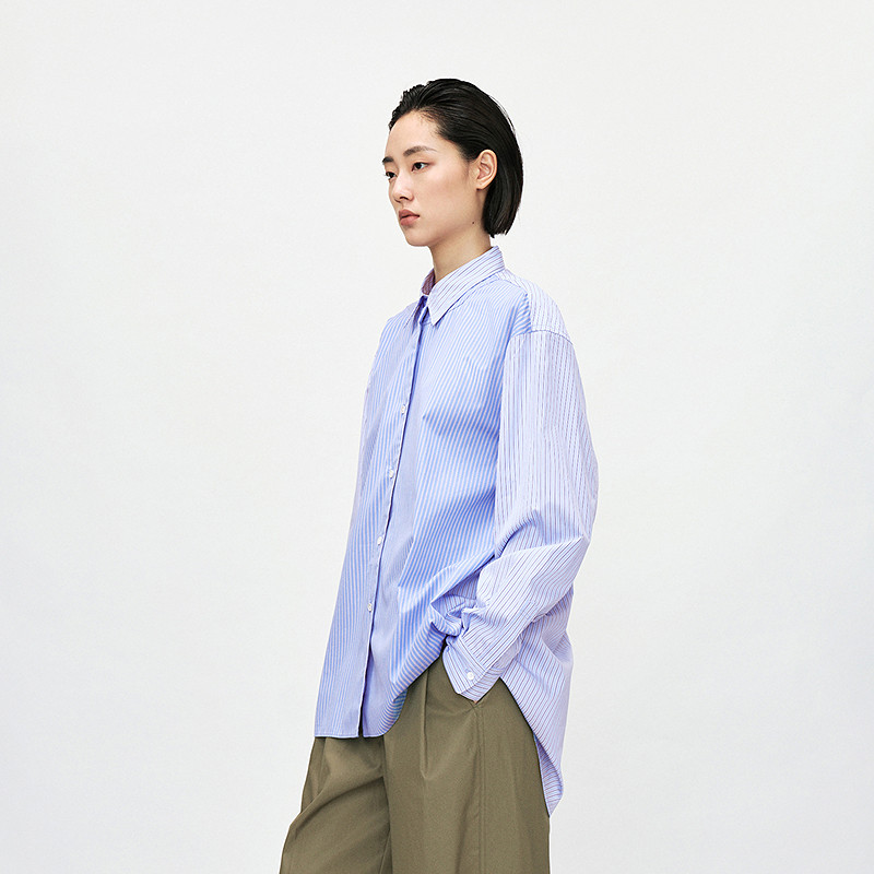【SAMUEL系列】LESS春棉质OVERSIZE宽松条纹衬衫女2P3212650
