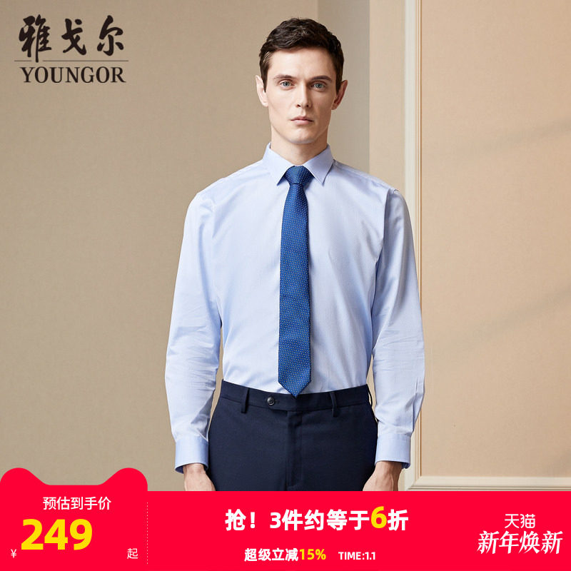 【条纹DP免烫】雅戈尔春秋新品官方商务休闲职业新疆棉长袖衬衫男