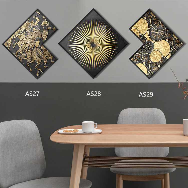 现代简约装饰画餐厅客厅创意组合高级感挂画抽象缺口晶瓷三联壁画