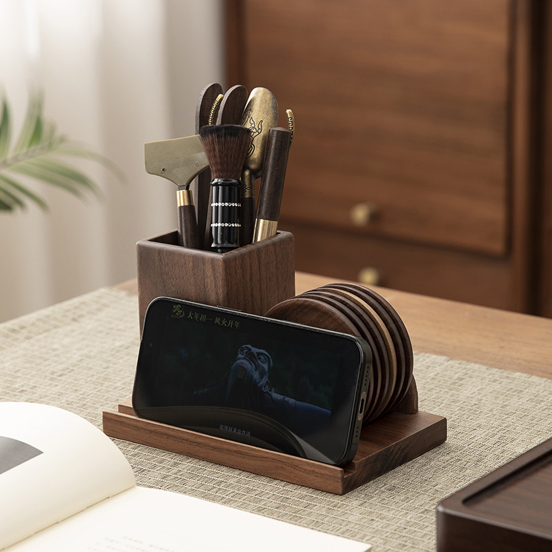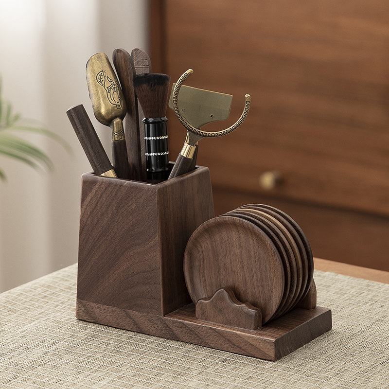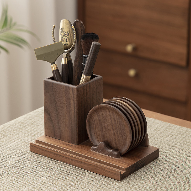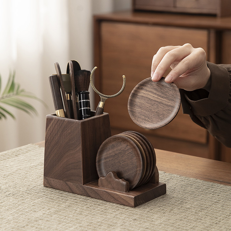 北美胡桃木茶道六君子套装轻奢杯垫隔热垫多功能实木茶道六君子配