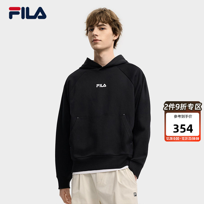 秋冬质感简约系列FILA 斐乐官方情侣款连帽卫衣2025冬新款插肩袖