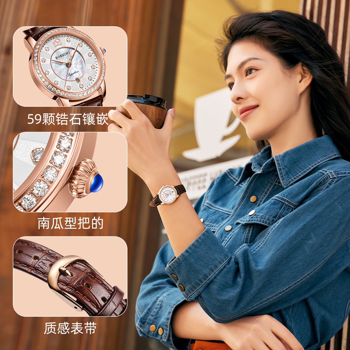 罗西尼手表典美系列气质高级感女手表贝母表盘锆石石英表5240222