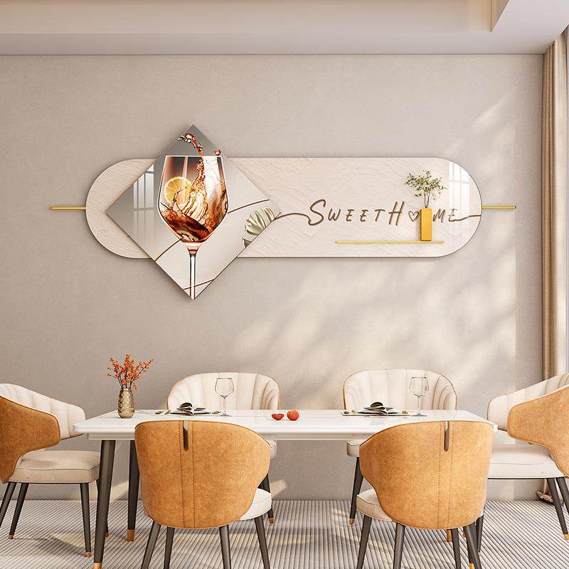 现代风餐厅晶瓷装饰画组合挂画轻奢背景圆形画墙面餐桌墙面饰品画