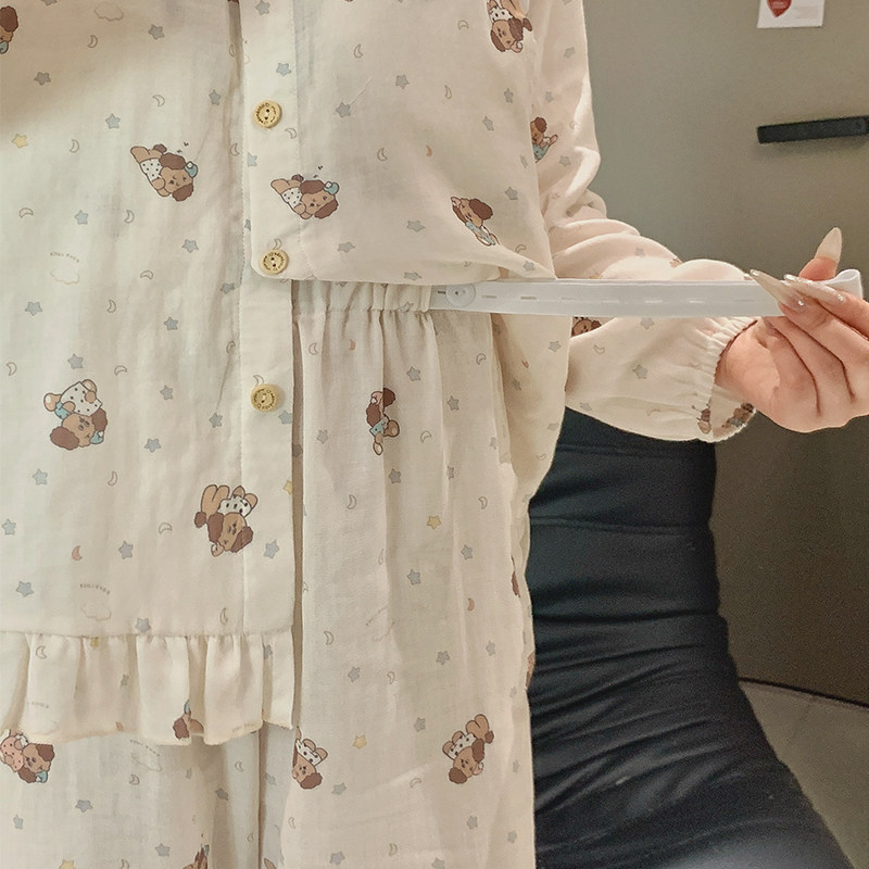 空气棉月子服秋冬纯棉产后夏季薄款全棉吸汗喂奶产妇哺乳孕妇睡衣
