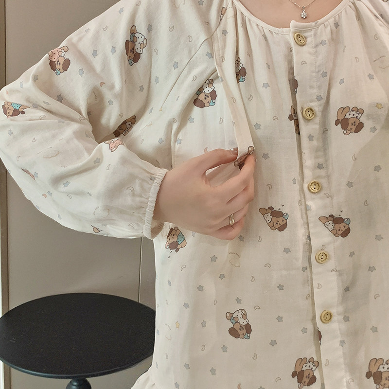带胸垫奶香风纯棉月子服春秋季产后产妇孕妇睡衣夏薄款哺乳喂奶衣