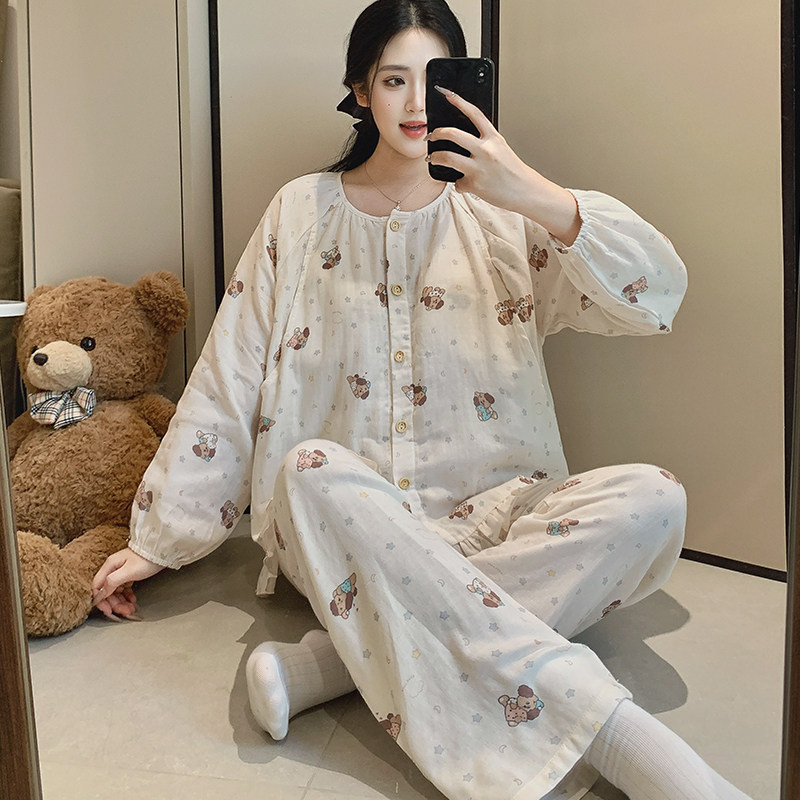 带胸垫月子服冬季纯棉产后全棉吸汗哺乳期孕妇睡衣夏季产妇家居服