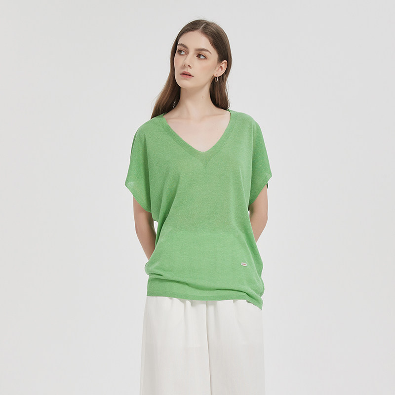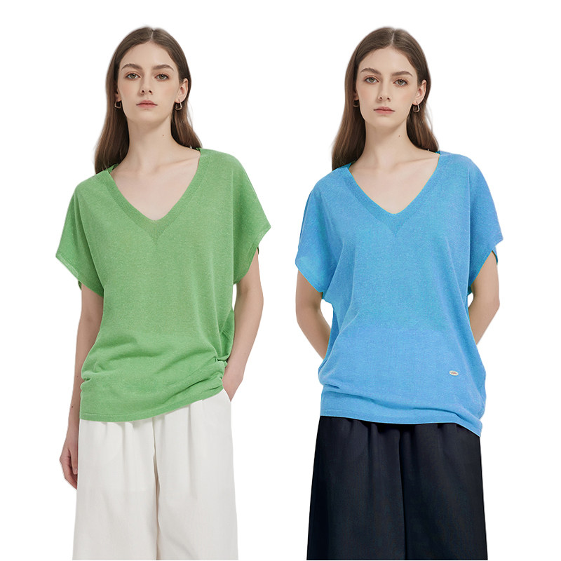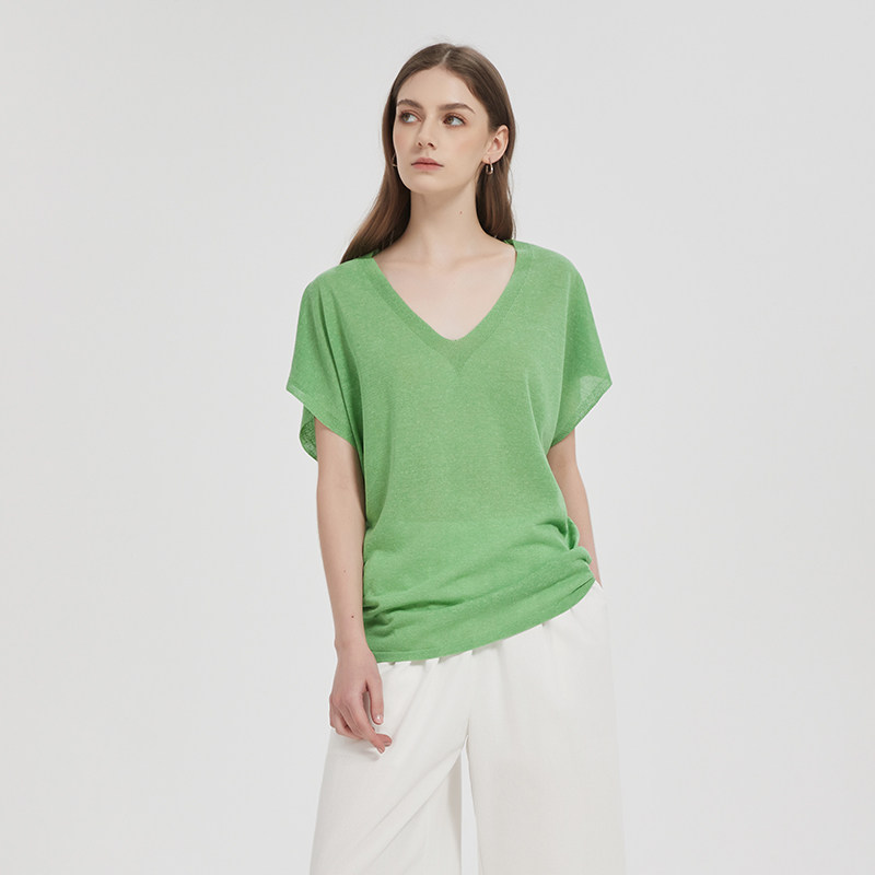 慵懒松弛V领莱赛尔亚麻上衣