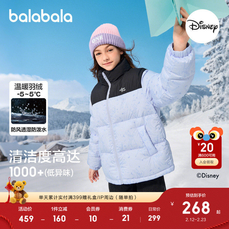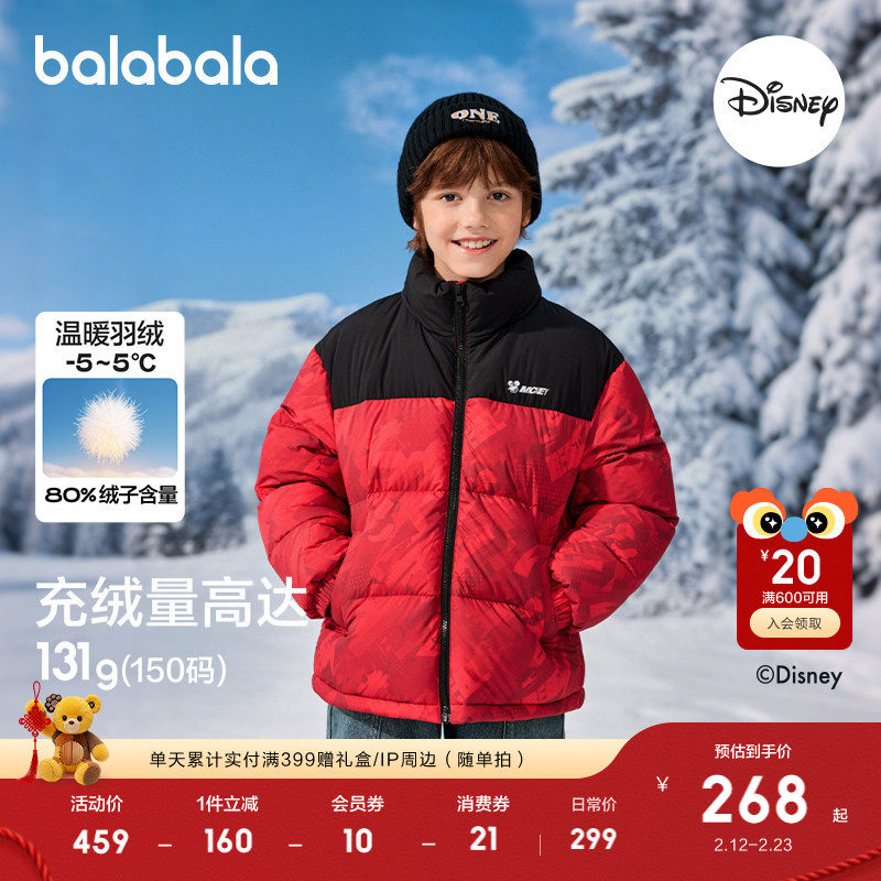 【迪士尼IP】巴拉巴拉童装儿童羽绒服男女童2025年外套红色拜年服
