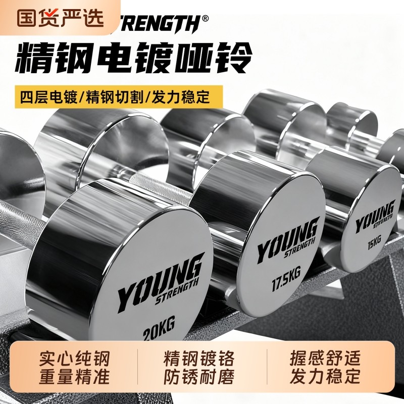 实心纯钢电镀哑铃组合纯铁防锈不锈钢健身房专用男士家用大重量