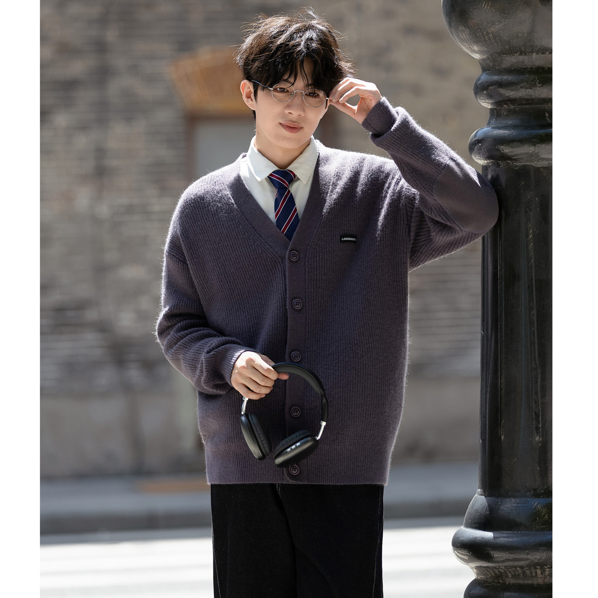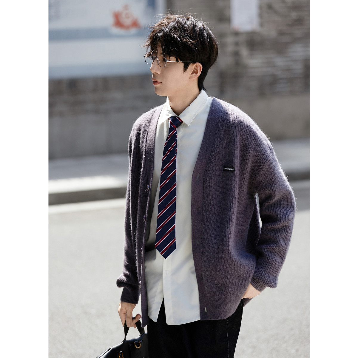 唐狮秋冬季毛衣外套男款V领开衫毛线衫百搭简约风潮流时尚TM