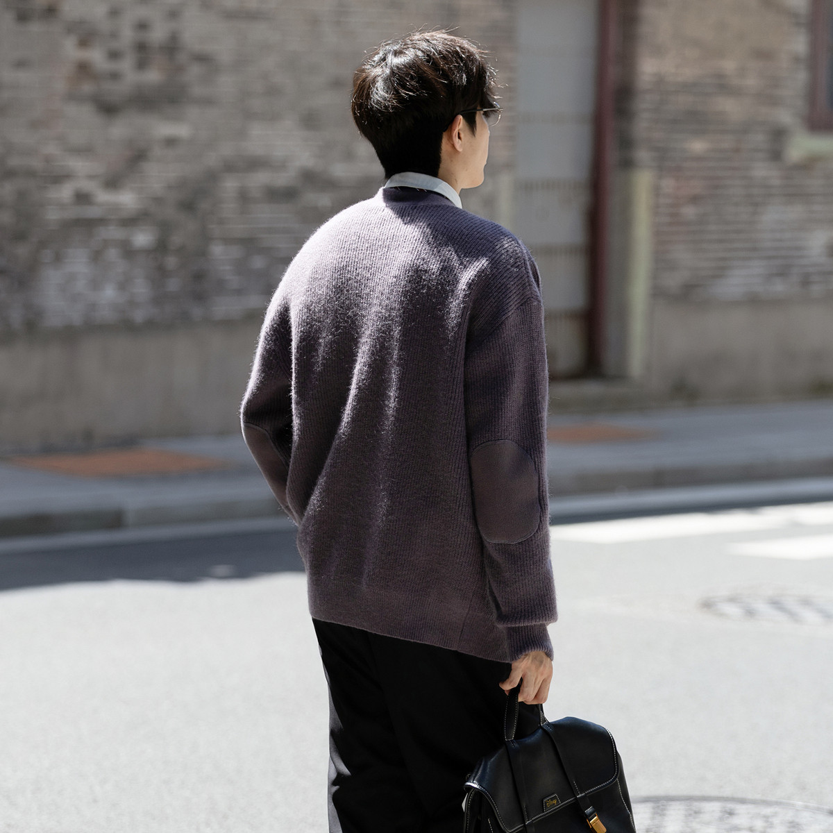 ASSDY|绵羊毛900G重磅翻领假两件毛衣男2025冬轻熟风休闲针织线衣