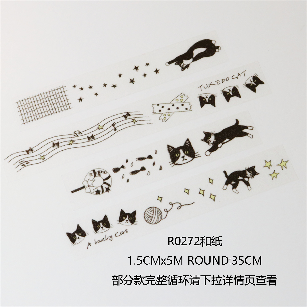 BOBOGD和纸胶带整卷拉条基础款手帐搭配黑猫波点装饰文具胶带