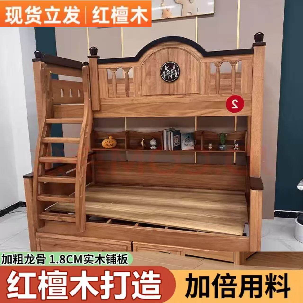 子母床高低床儿童床全纯实木上下铺男孩床上下字母床红檀木双层床